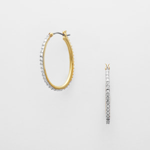 繊細さが魅力のシンプルフープピアス。華奢なメタルに散りばめられたカットガラスの煌めきが、華やかさをプラス。縦長のオーバルフォルムは、お顔まわりをすっきりと見せてくれます。カジュアルにもドレスアップにも、さまざまなコーディネートに活躍するアイテムです。