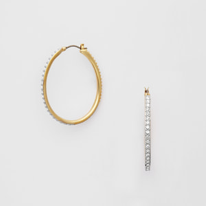 繊細さが魅力のシンプルフープピアス。華奢なメタルに散りばめられたカットガラスの煌めきが、華やかさをプラス。縦長のオーバルフォルムは、お顔まわりをすっきりと見せてくれます。カジュアルにもドレスアップにも、さまざまなコーディネートに活躍するアイテムです。