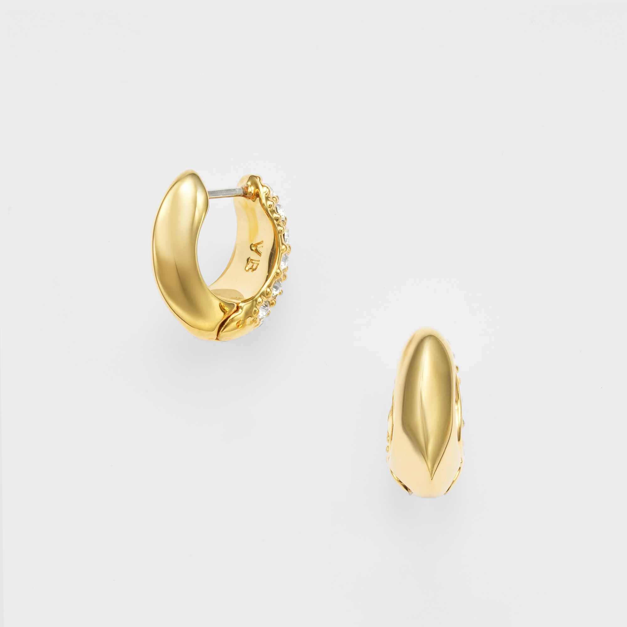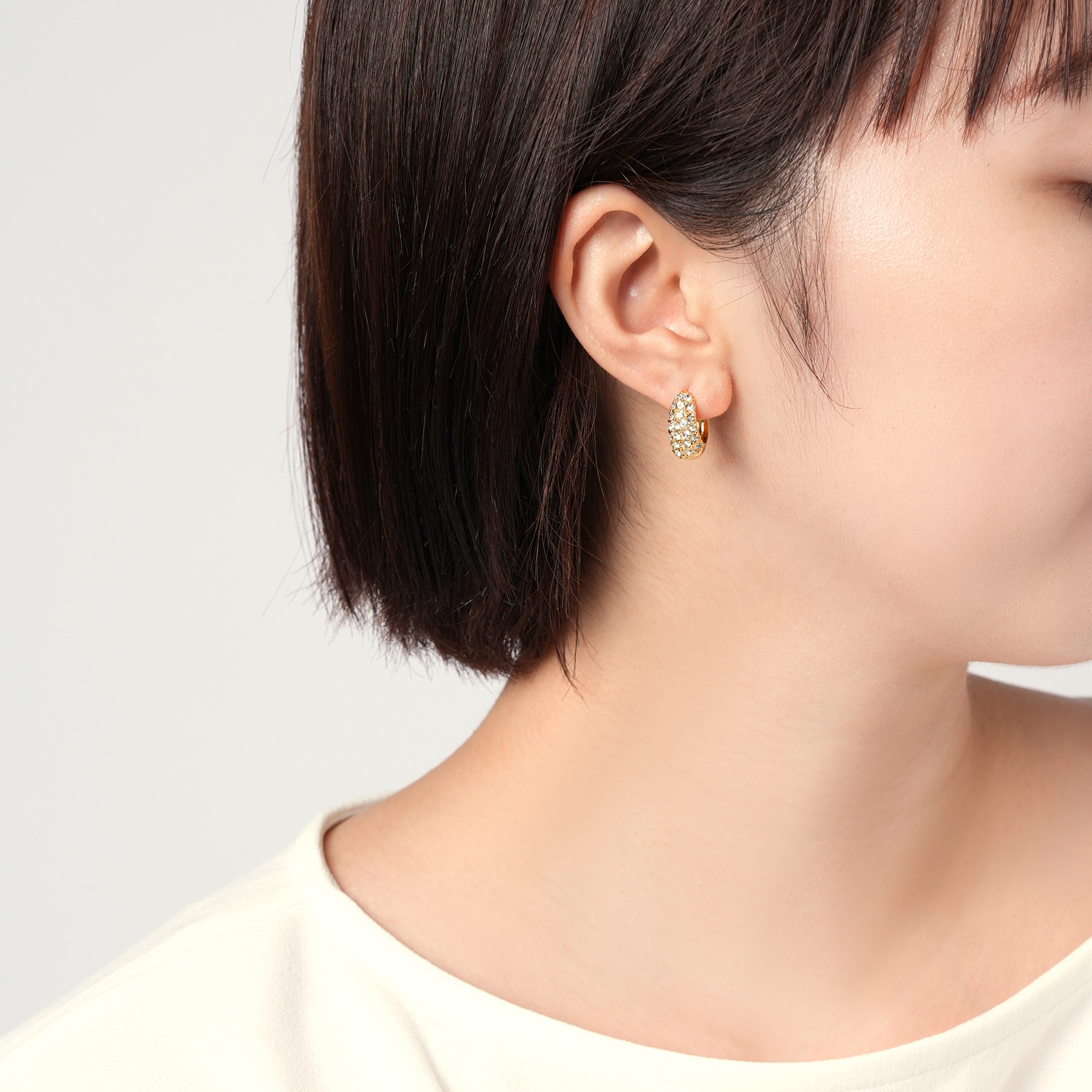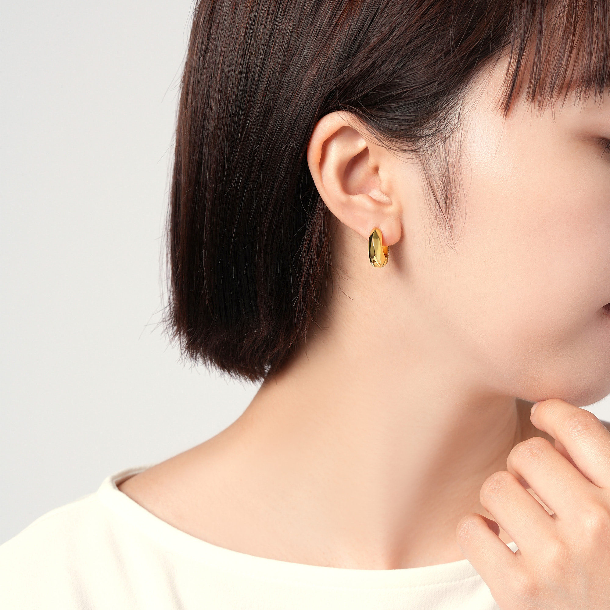 シンプルで立体的に耳を挟み込むデザインピアス。キャッチが一体化しているので、カチッと留めるだけで引っかかりにくい仕様です。向きを変えるとリバーシブルに使用でき、スタイリングアレンジを楽しめます。幅広いシーンでお使いいただけるシンプルなピアスです。