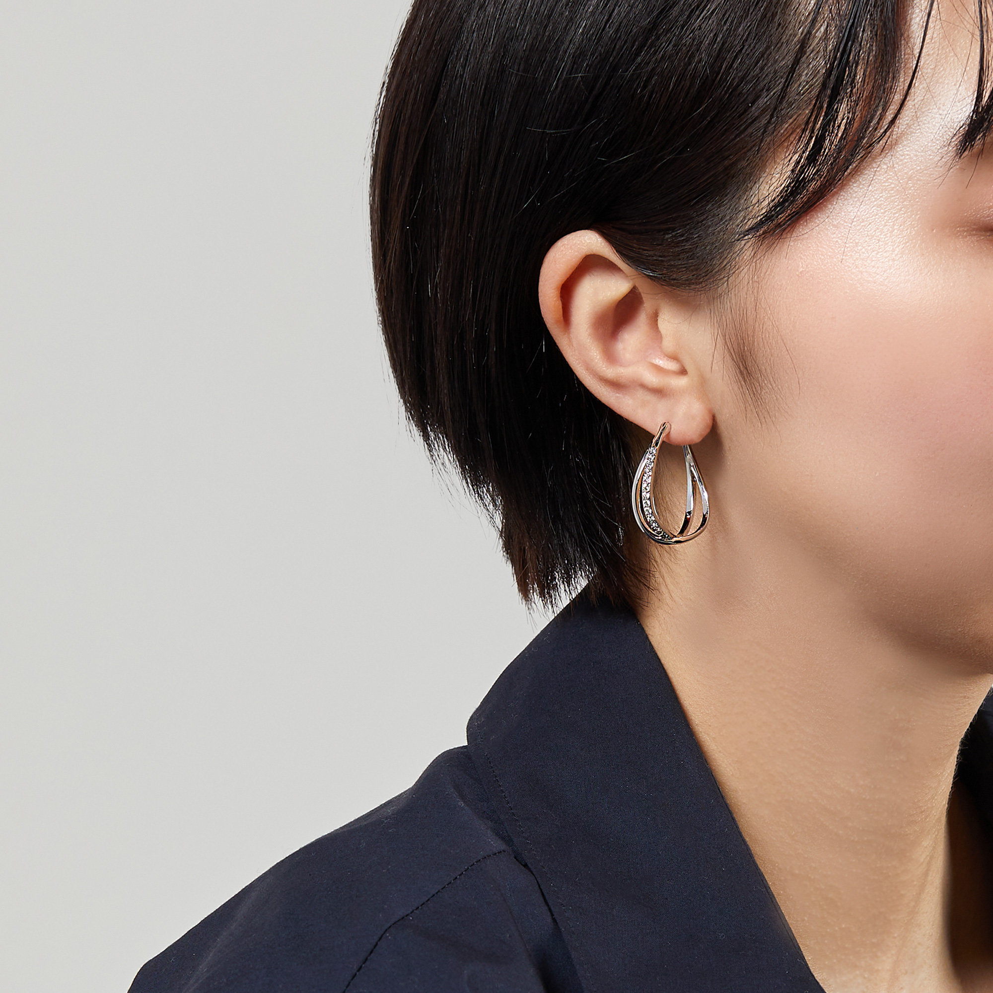 繊細なフープが重なり合ったエレガントな印象で、耳元に上質感を与えてくれるアイテムです。