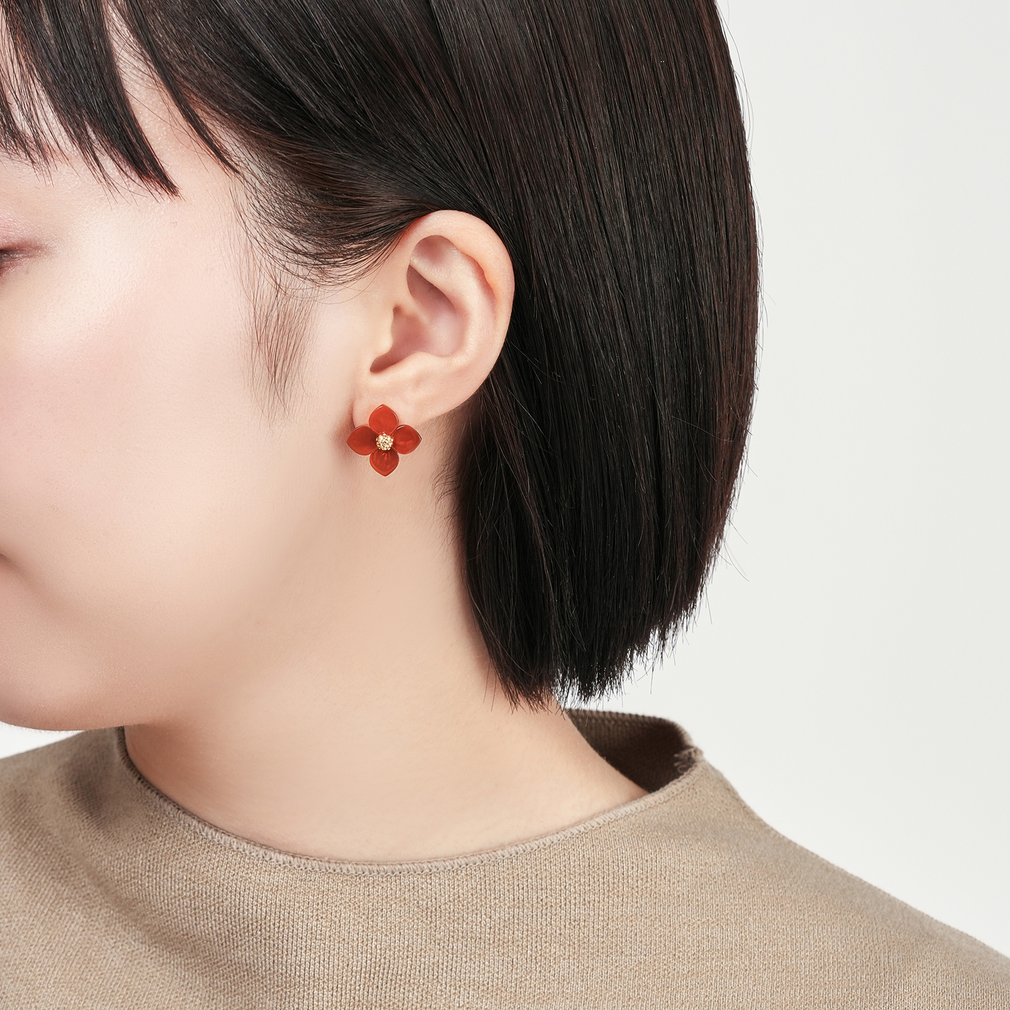 質の良いカーネリアンを1つ1つ丁寧にかたどった可憐な花モチーフのピアス。