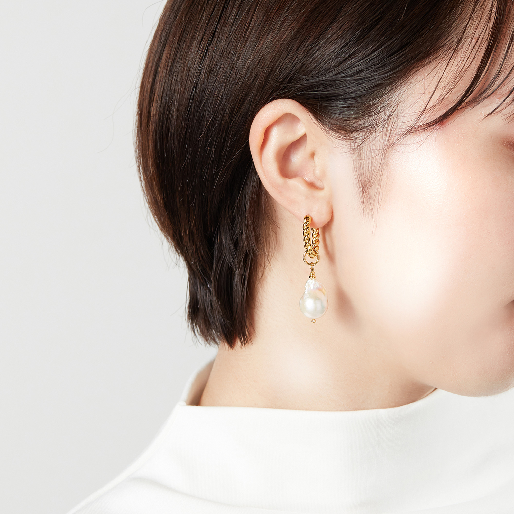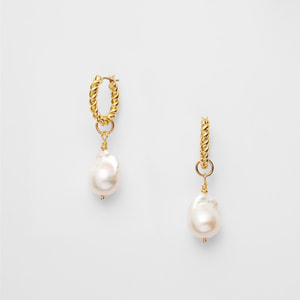 美しい光沢と個性的なフォルムが魅力の、淡水有核バロックパールチャームをあしらったピアスです。
