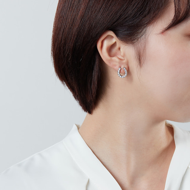 古くから幸運のお守りとされるホースシュー(馬蹄)をモチーフにしたピアス。