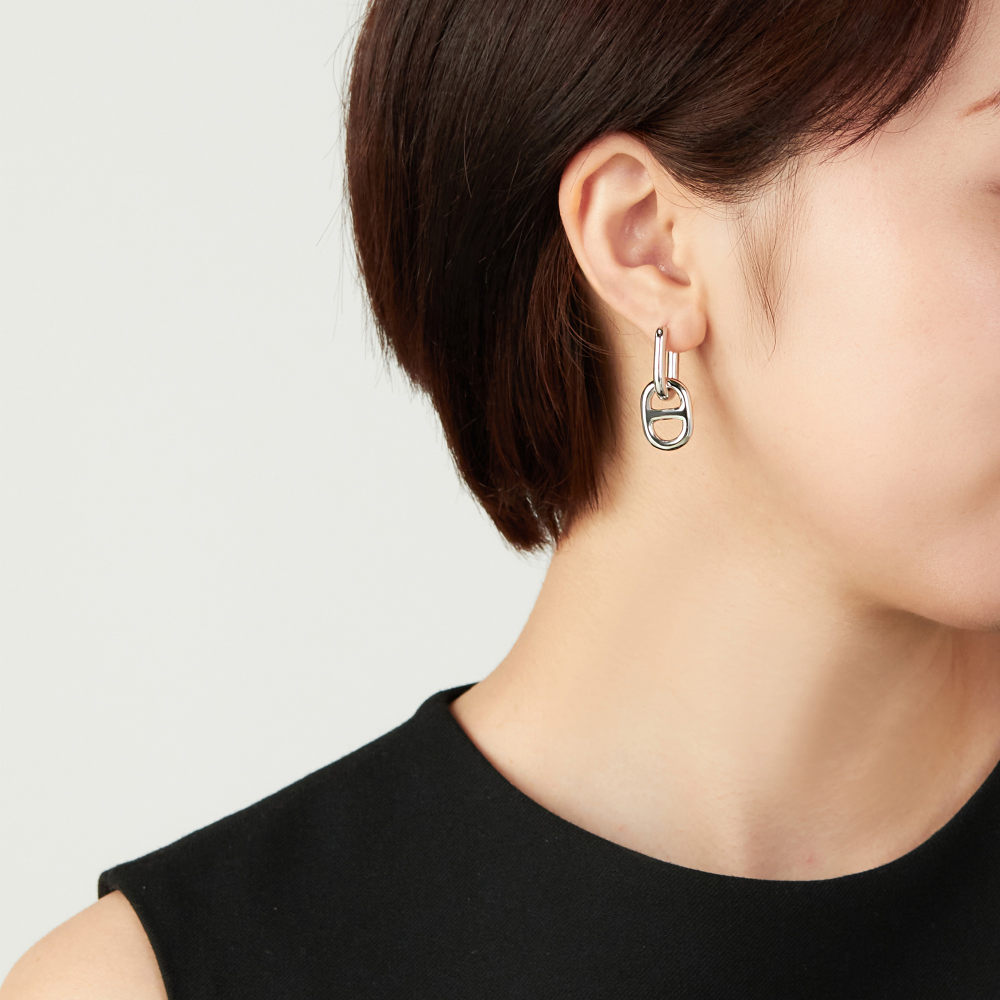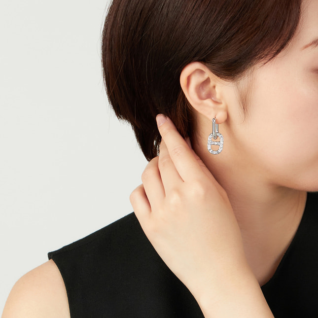 チャームの向きを変えてメタリックピアスとして、またチャームを外してシンプルなオーバルフープピアスとしてもお使いいただるチェンジャブル仕様です。