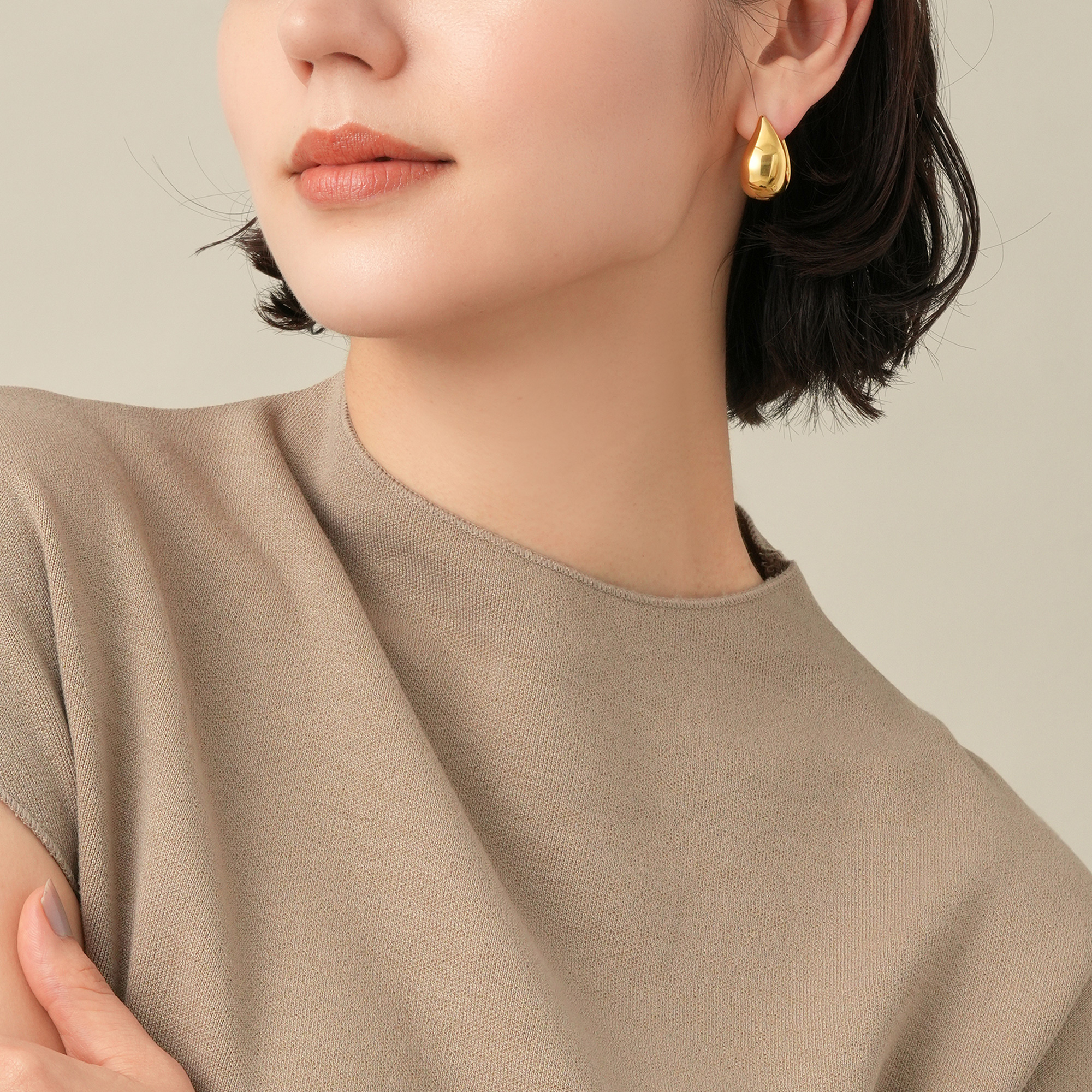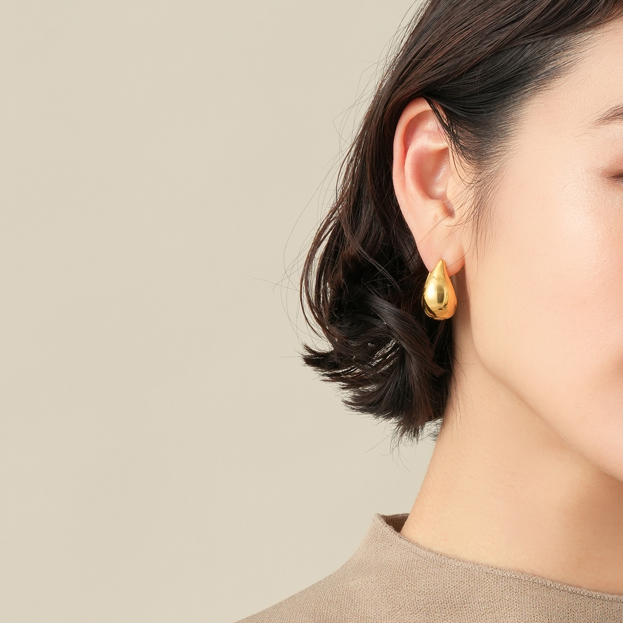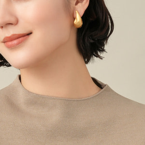芽吹きはじめた植物の種や自然の恵みの雨粒からインスパイアされた、オーガニックなドロップフォルムのピアス。耳を包み込むようなフォルムのデザインが、横や後ろなどどこから見ても隙のない美しさを演出します。表面のマット仕上げと 裏面の鏡面仕上げのコントラストが 洗練された印象を与えます。