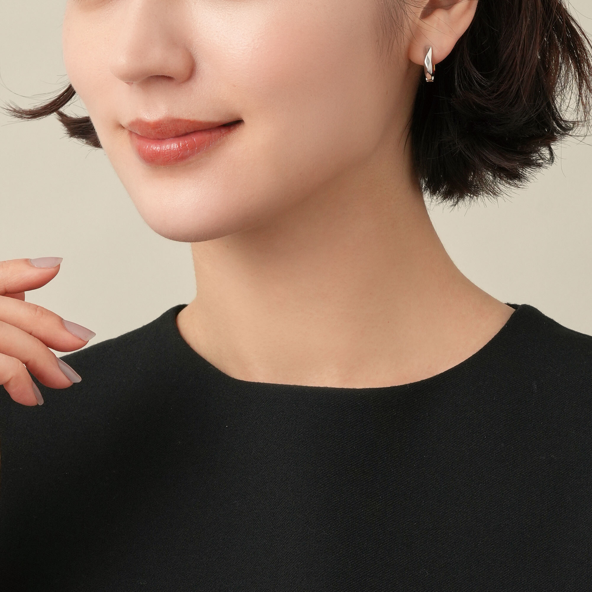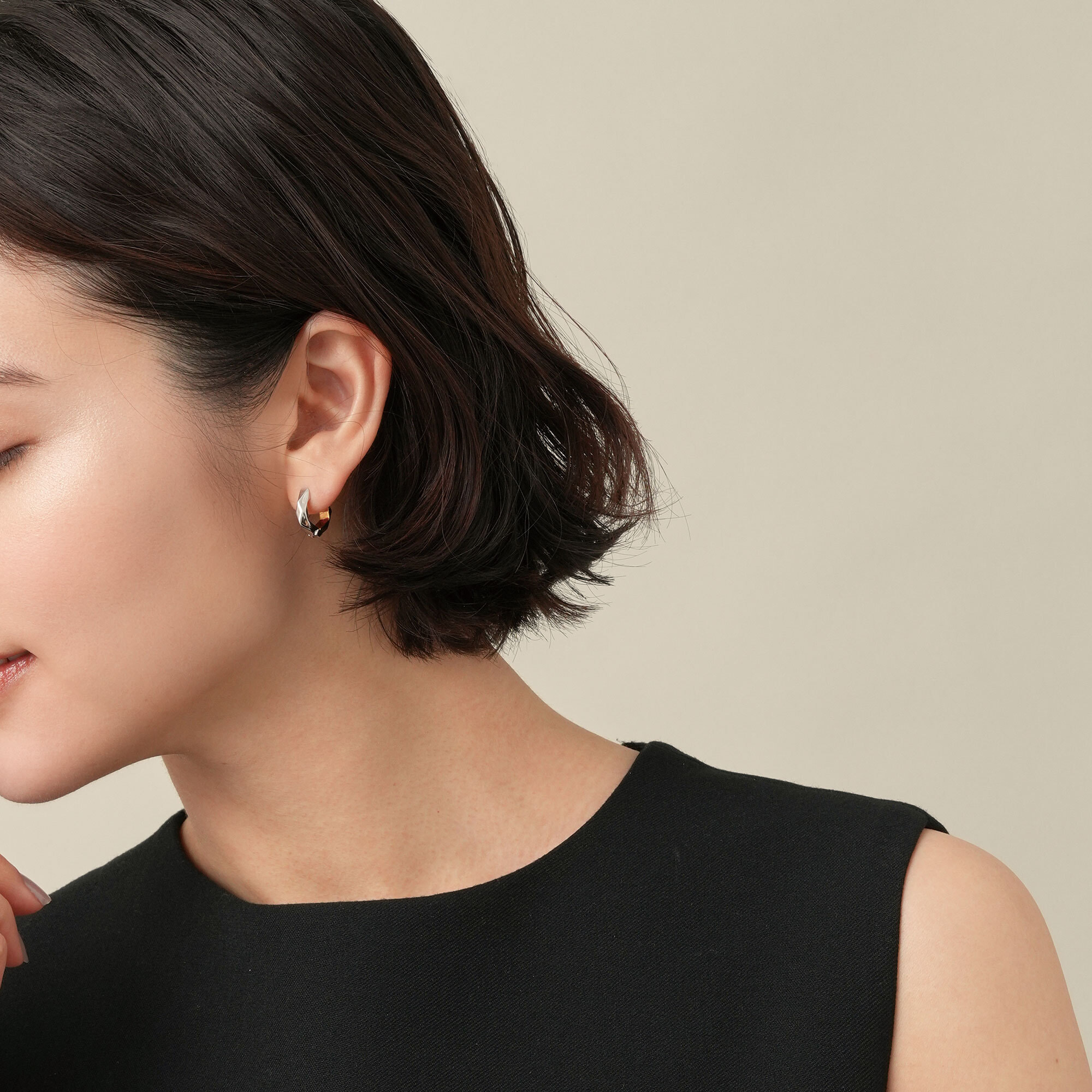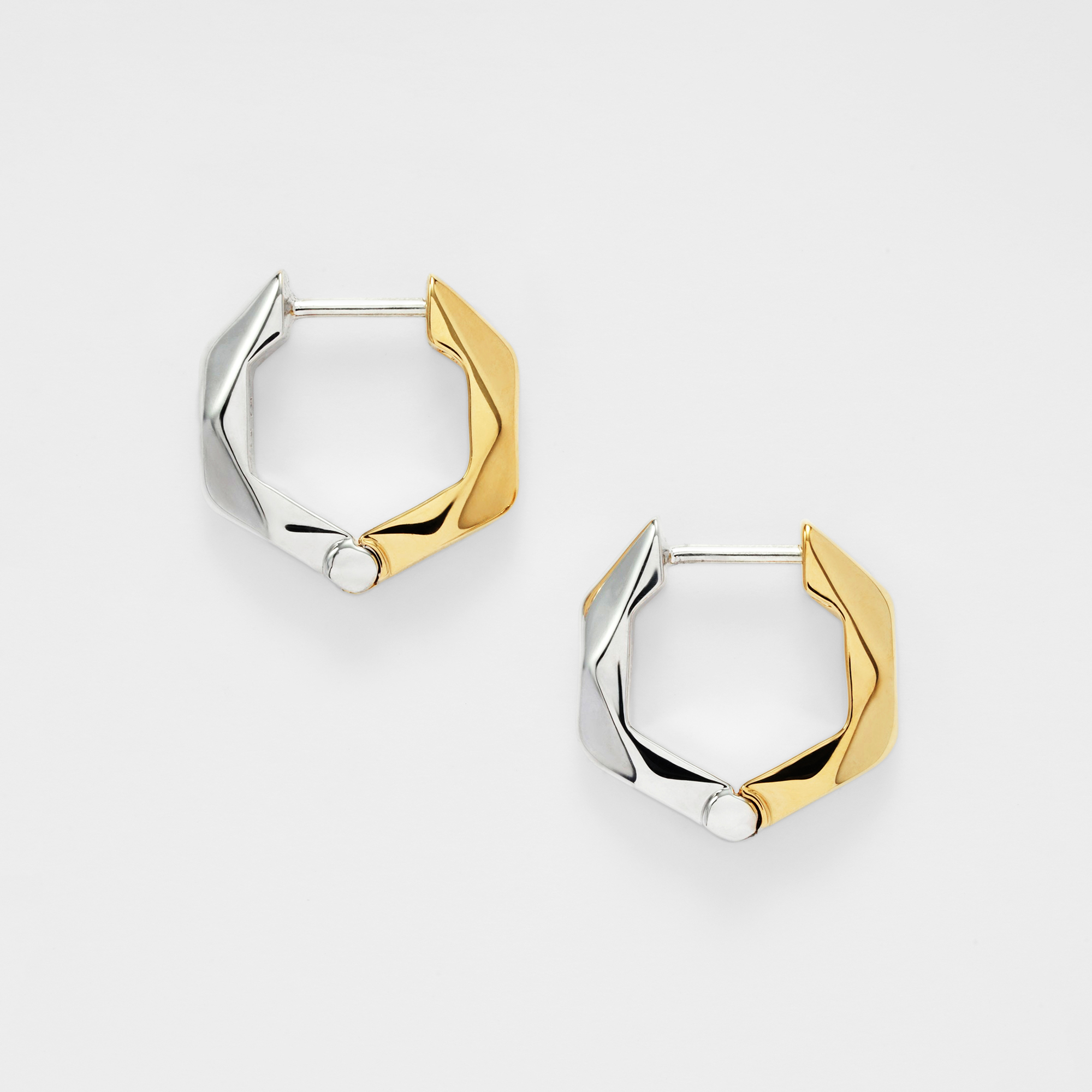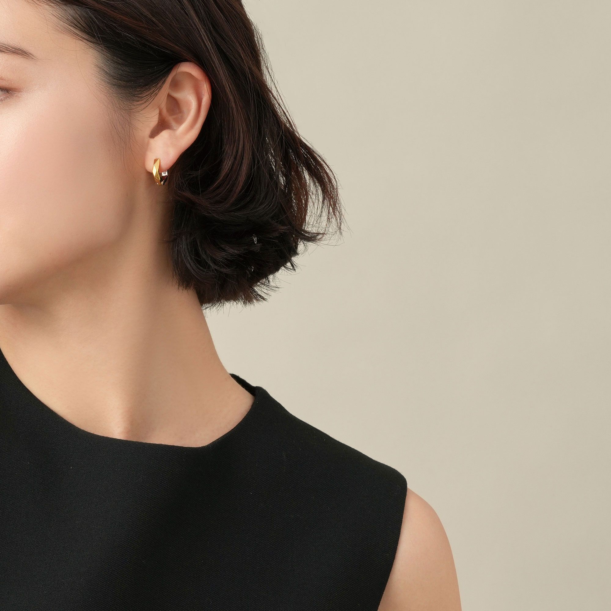 ジュエリーライクなサイズ感が魅力のヘキサゴンデザインのピアス。