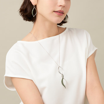 透かしのリーフシェイプが軽やかで印象的なピアス。