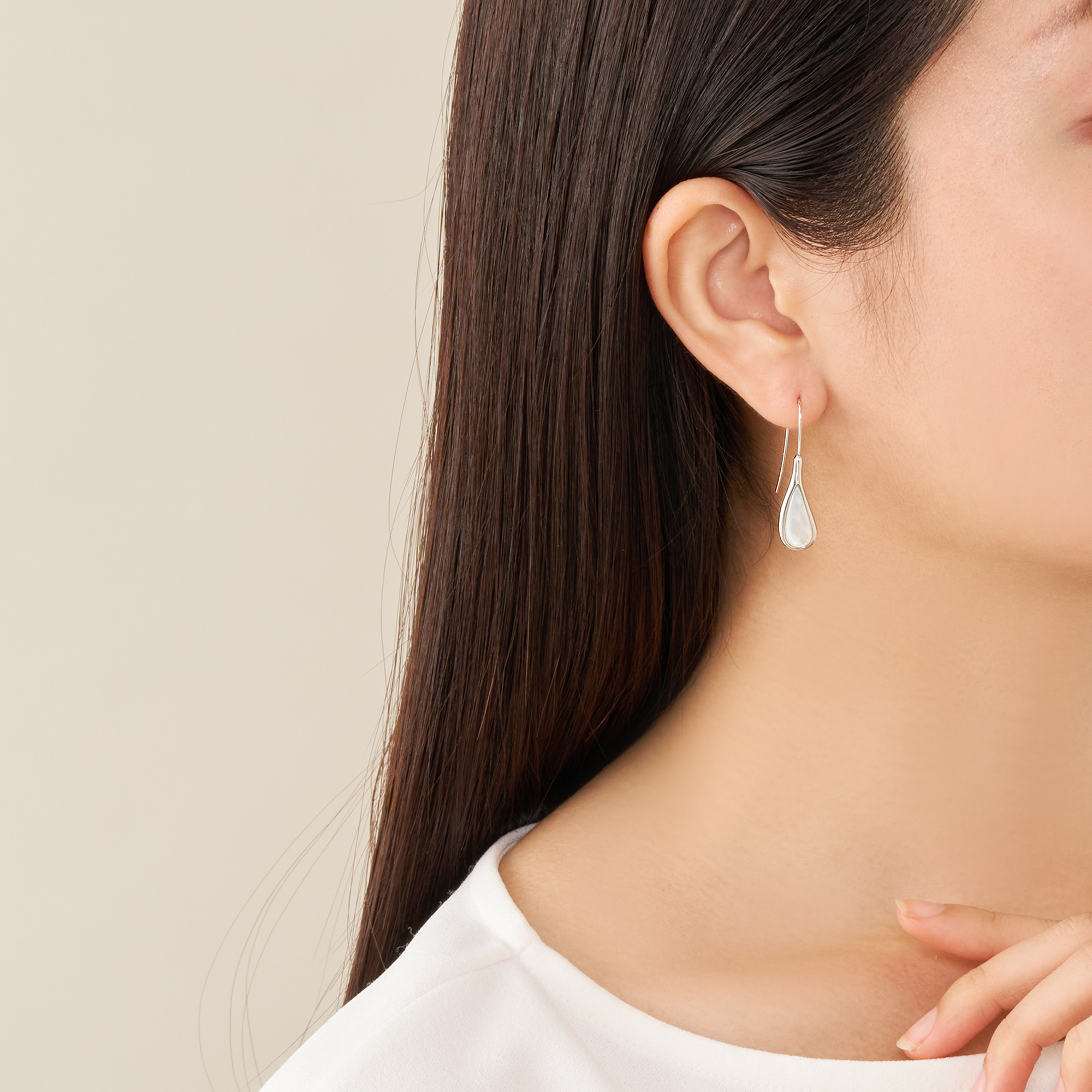 流れるようなドロップシェイプのメタルフレームが、白蝶貝の上品な色艶をより美しく際立たせます。