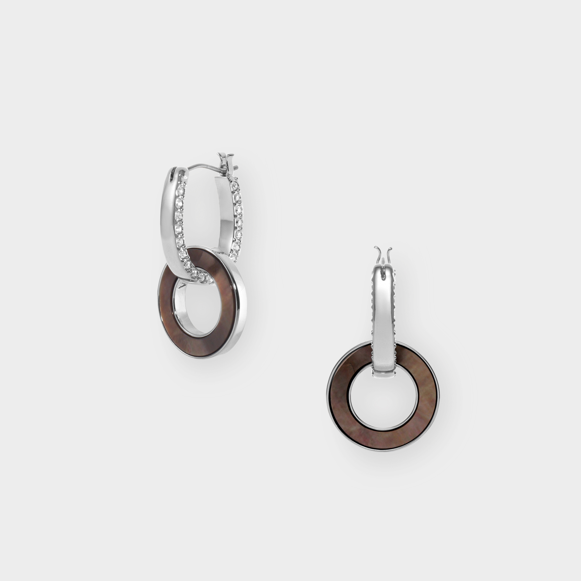 洗練されたサークルフォルムと黒蝶貝のクールな輝きが目をひくピアス。