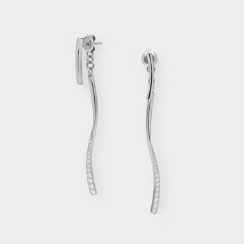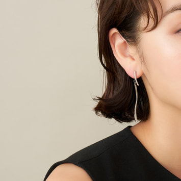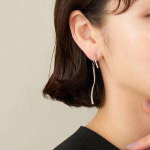 長めのリーンシルエットが印象的なピアス。連なる小さなキュービックジルコニアの繊細な輝きが、お顔周りを明るく演出します。コーディネートをスタイリッシュに彩るアイテムです。本体・ポストの素材は医療器具にも使われるサージカルステンレスを使用しています。