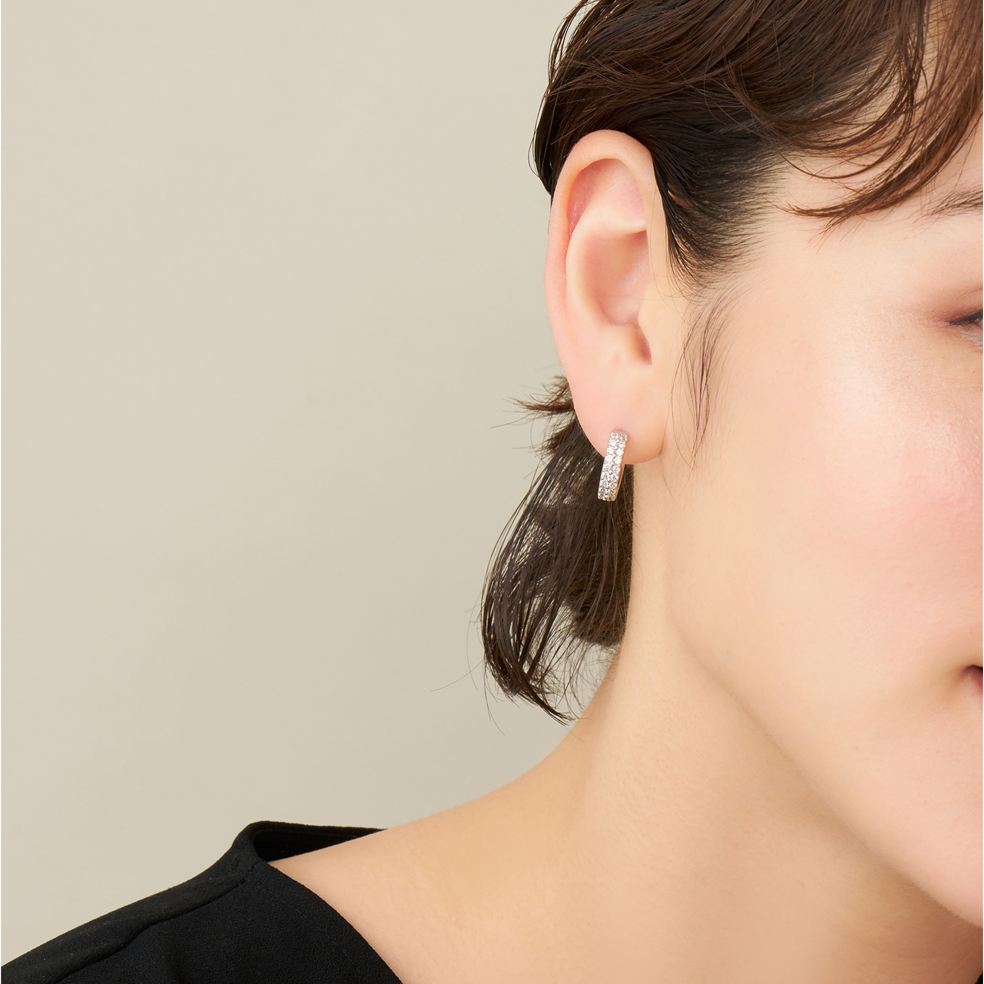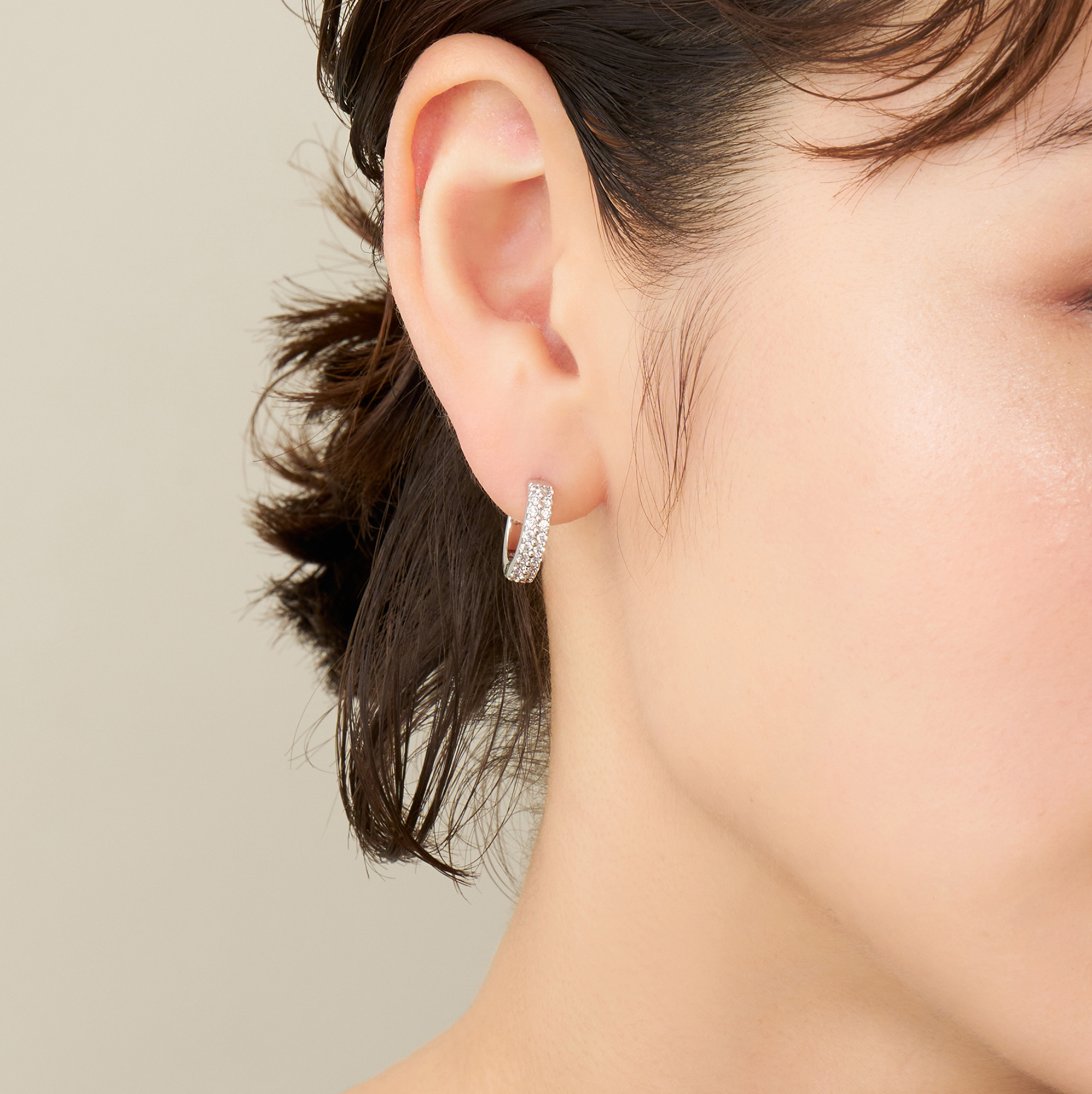 繊細で華やかなキュービックジルコニアの輝きとつややかなメタルの光沢が、耳元を華やかに彩ります。