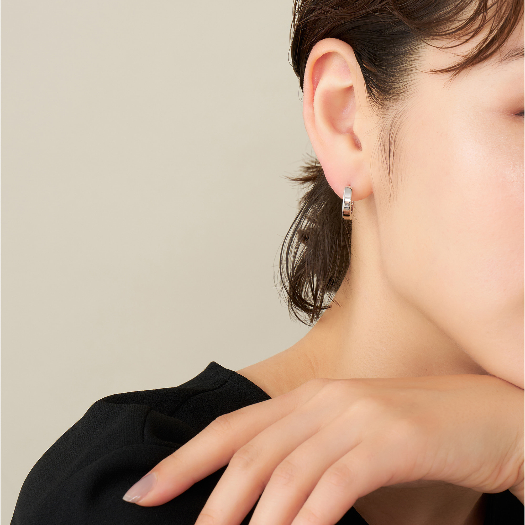 ジュエリーライクなサイズ感が魅力のフープピアス。