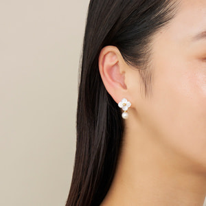 1つ1つ丁寧にかたどった白蝶貝の可憐な輝きに、淡水パールの優しい光沢がマッチ。