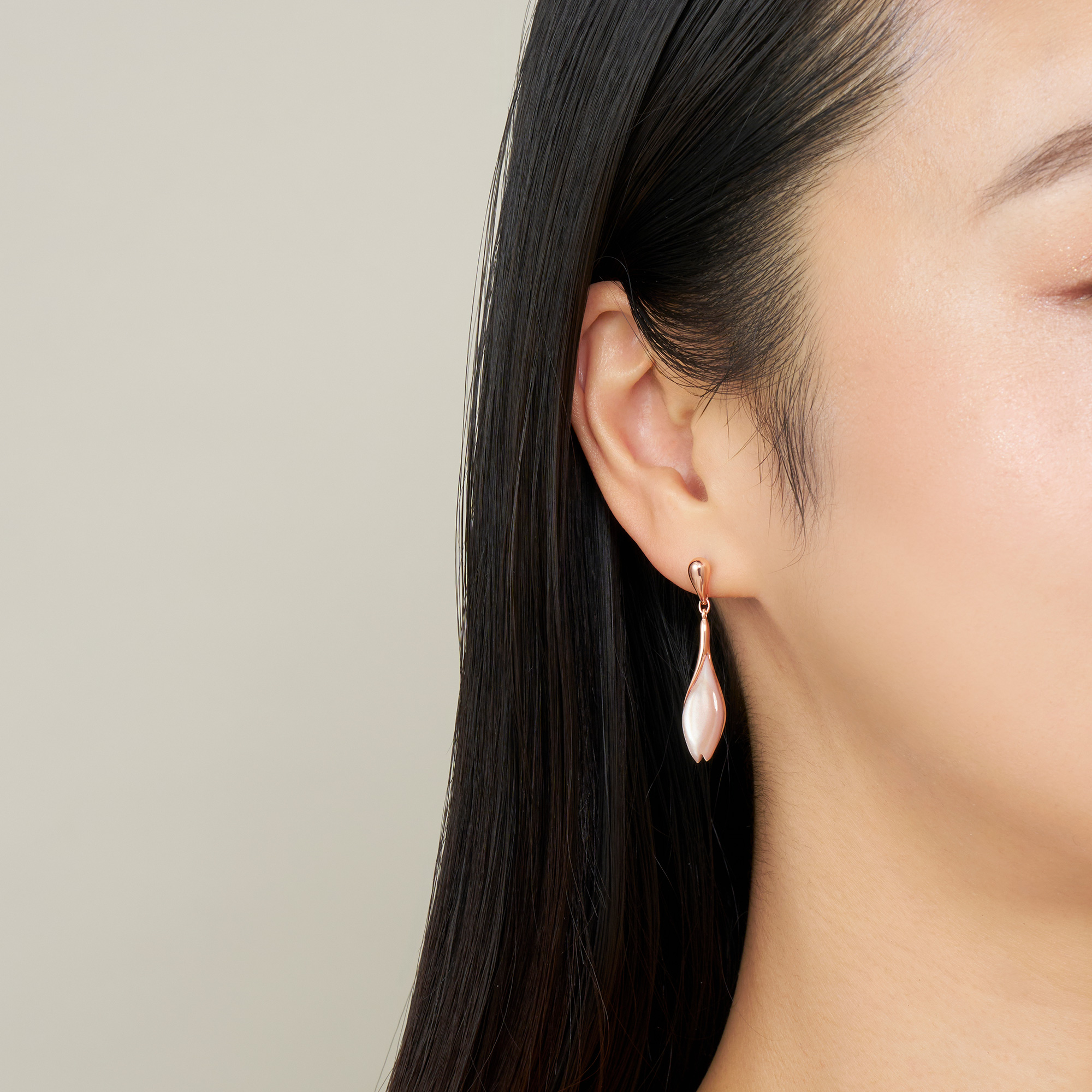 存在感香る大ぶりのデザインで、揺れる度にピンクシェルの瑞々しい光沢が品良く輝きお顔周りを美しく魅せてくれます。