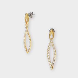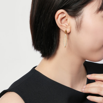 エレガントなカービングにカットガラスのパヴェが繊細に煌く、上質感のあるピアス。 耳元を華やかにし大人スタイルを完成させます。 やわらかい曲線美がいつものスタイリングを新鮮にブラッシュアップしてくれます。 色々なシーンでお使いいただけるデザインのピアスです。