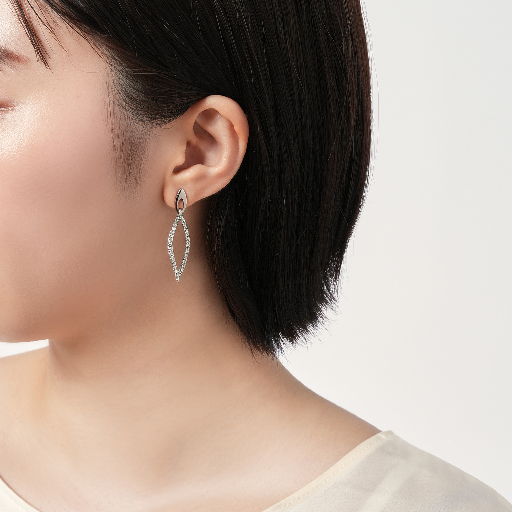 繊細なウェーブラインにカットガラスが煌く、エレガントな印象のピアス。軽やかに揺れ、程よい華やかさとボリューム感で大人のさまざまなシーンを上品にクラスアップしてくれます。