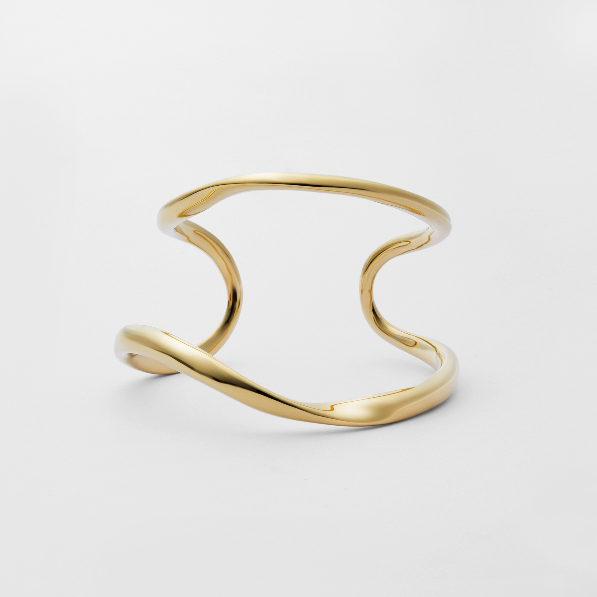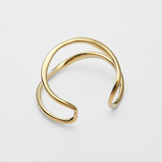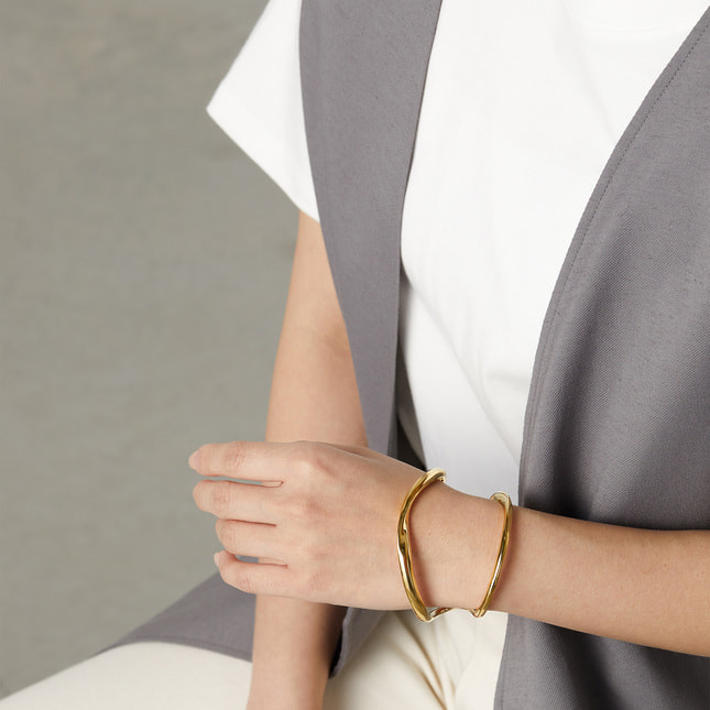 ダブルのラインがモダンなバングル。動きのある立体感を意識した曲線が軽やか。ディティールにまでこだわったデザインは1つ着けるだけでスタイリングにエッジな要素をプラスします。シンプルなデザインだからこそジュエリーライクなつくりの良さがひき立つアイテムです。