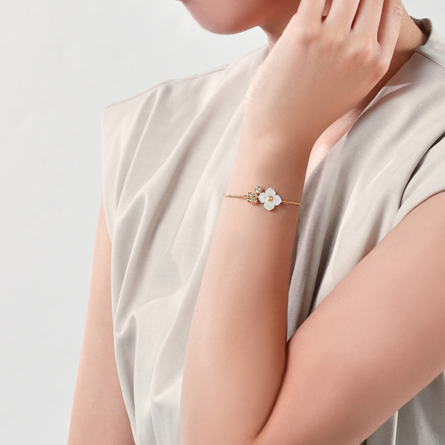 質の良いシェルを1つ1つ丁寧にかたどった、可憐な花のブレスレットです。