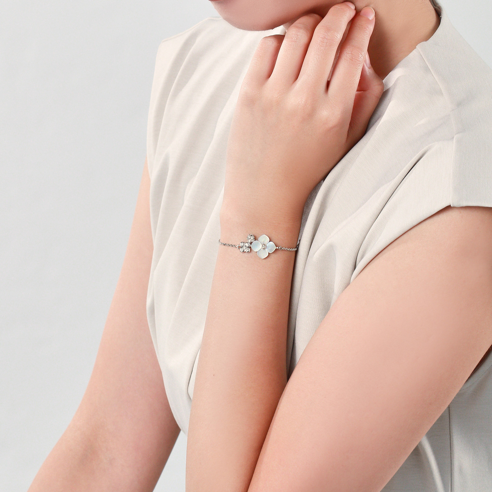 質の良いシェルを1つ1つ丁寧にかたどった、可憐な花のブレスレットです。
