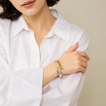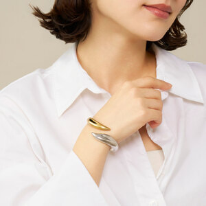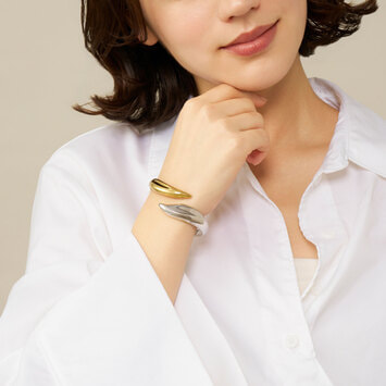 多肉植物の葉のぷっくりとしたユニークな形状からインスパイアされた、オーガニックなフォルムのブレスレット。