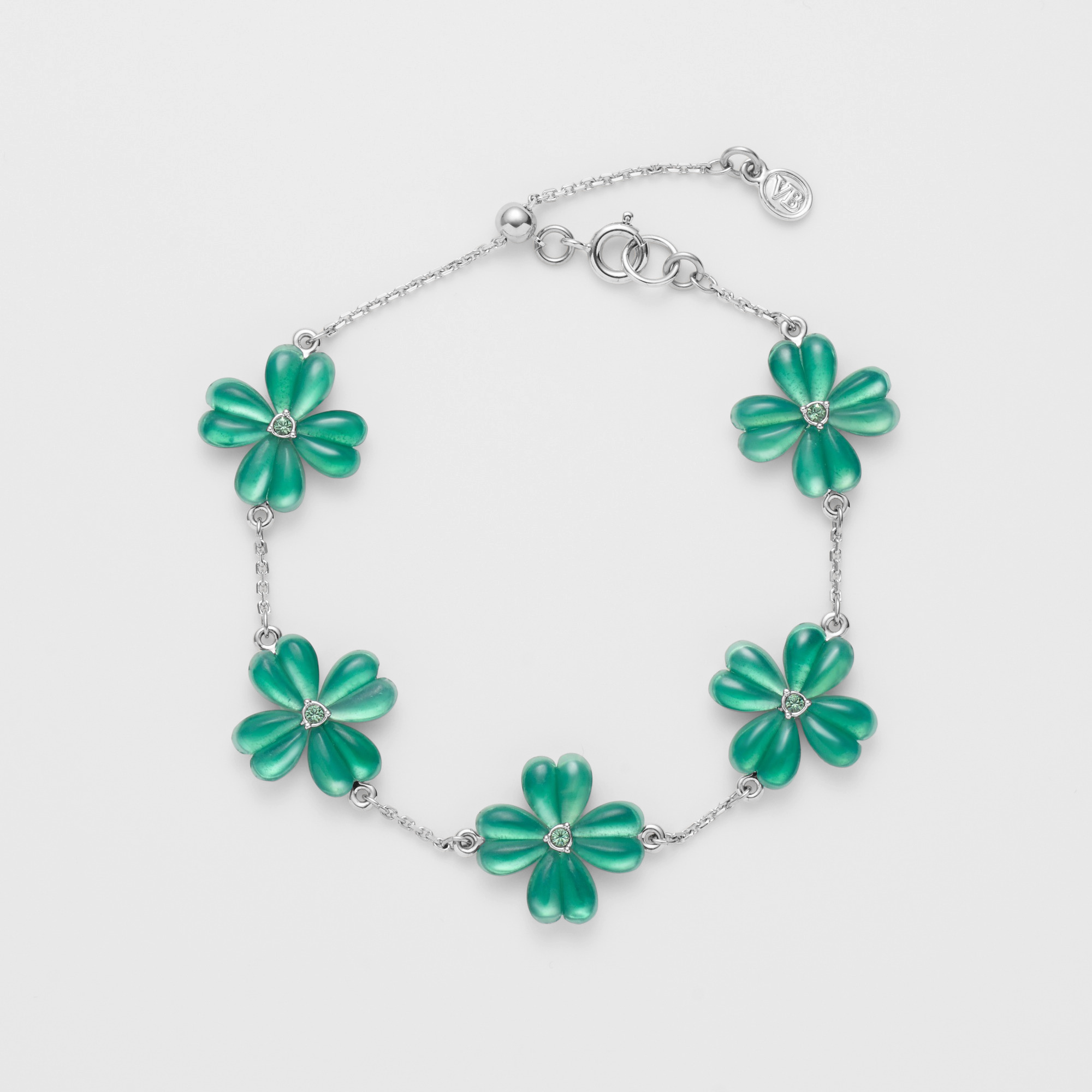 幸運の印といわれる四つ葉のクローバーのブレスレット。