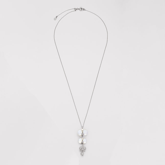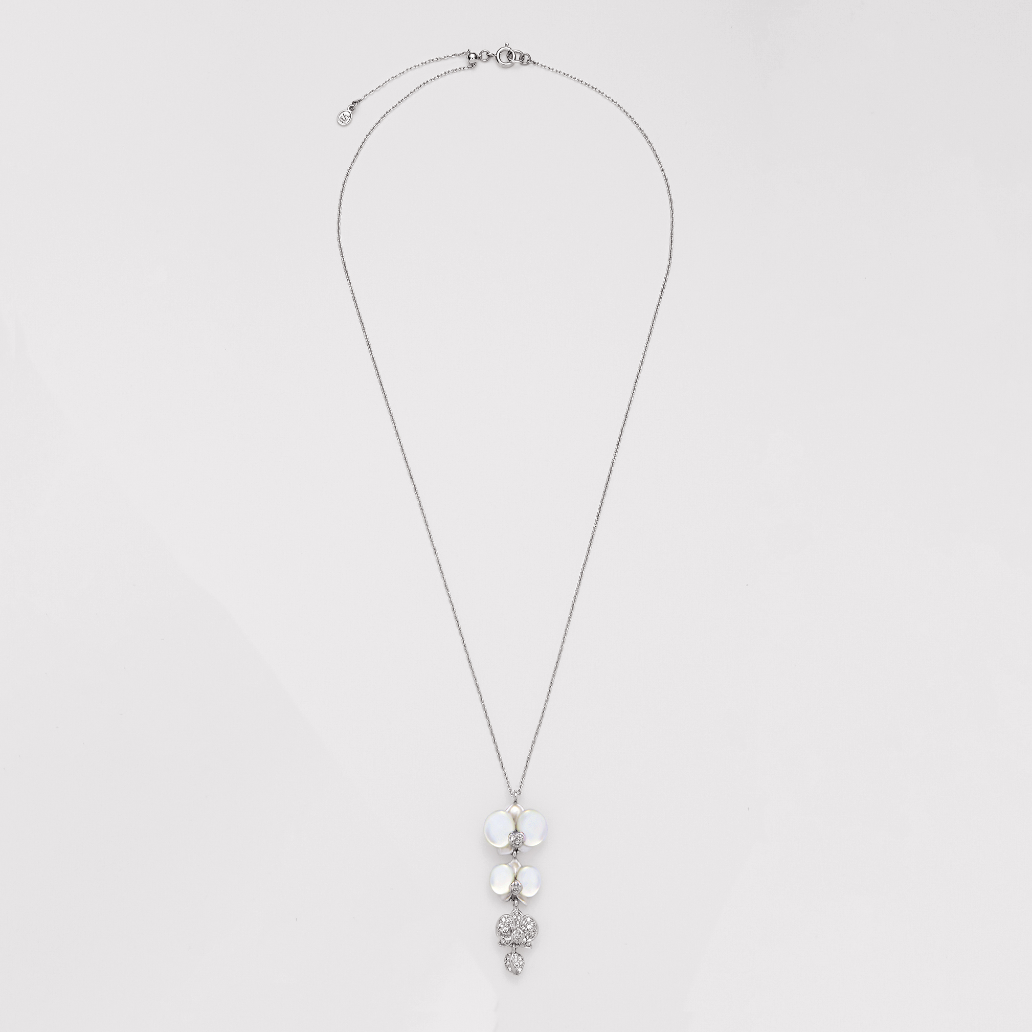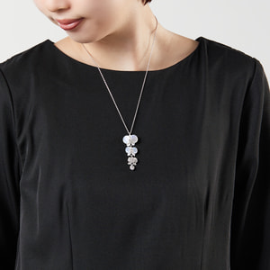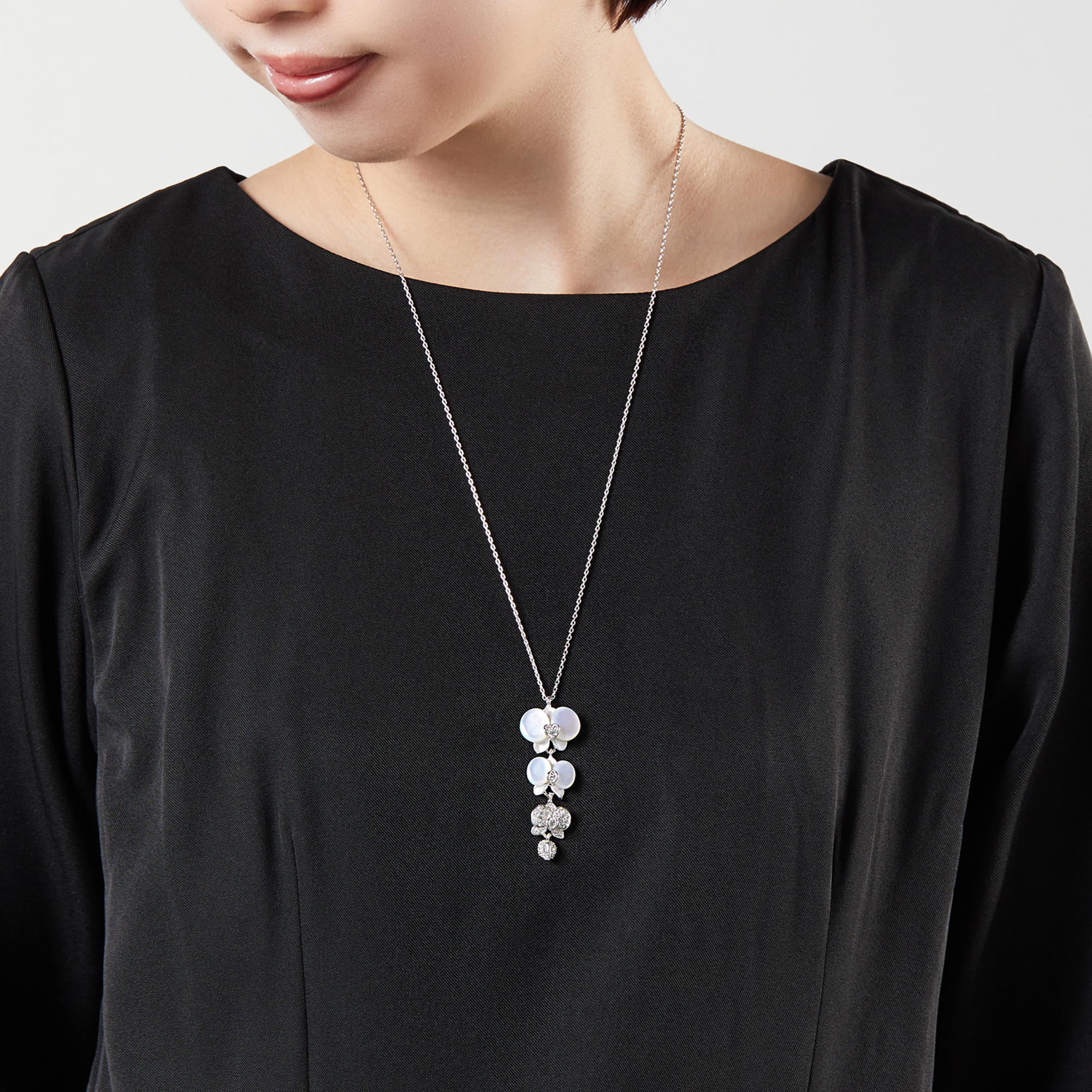 凛と咲く胡蝶蘭を、艶やかな白蝶貝でラグジュアリーに表現したネックレスです。