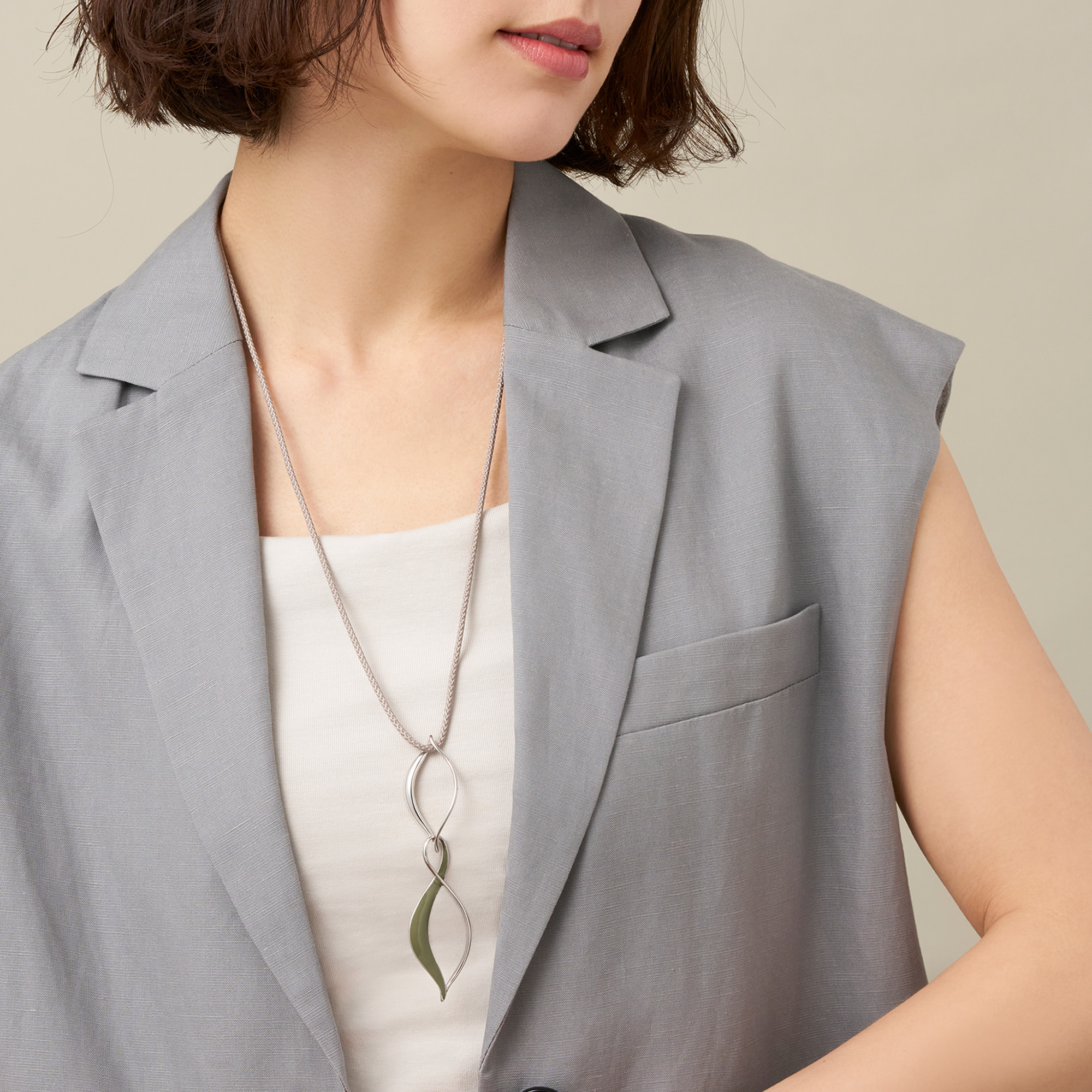 チェーンとコード、異なる2つの表情で楽しめるネックレス。