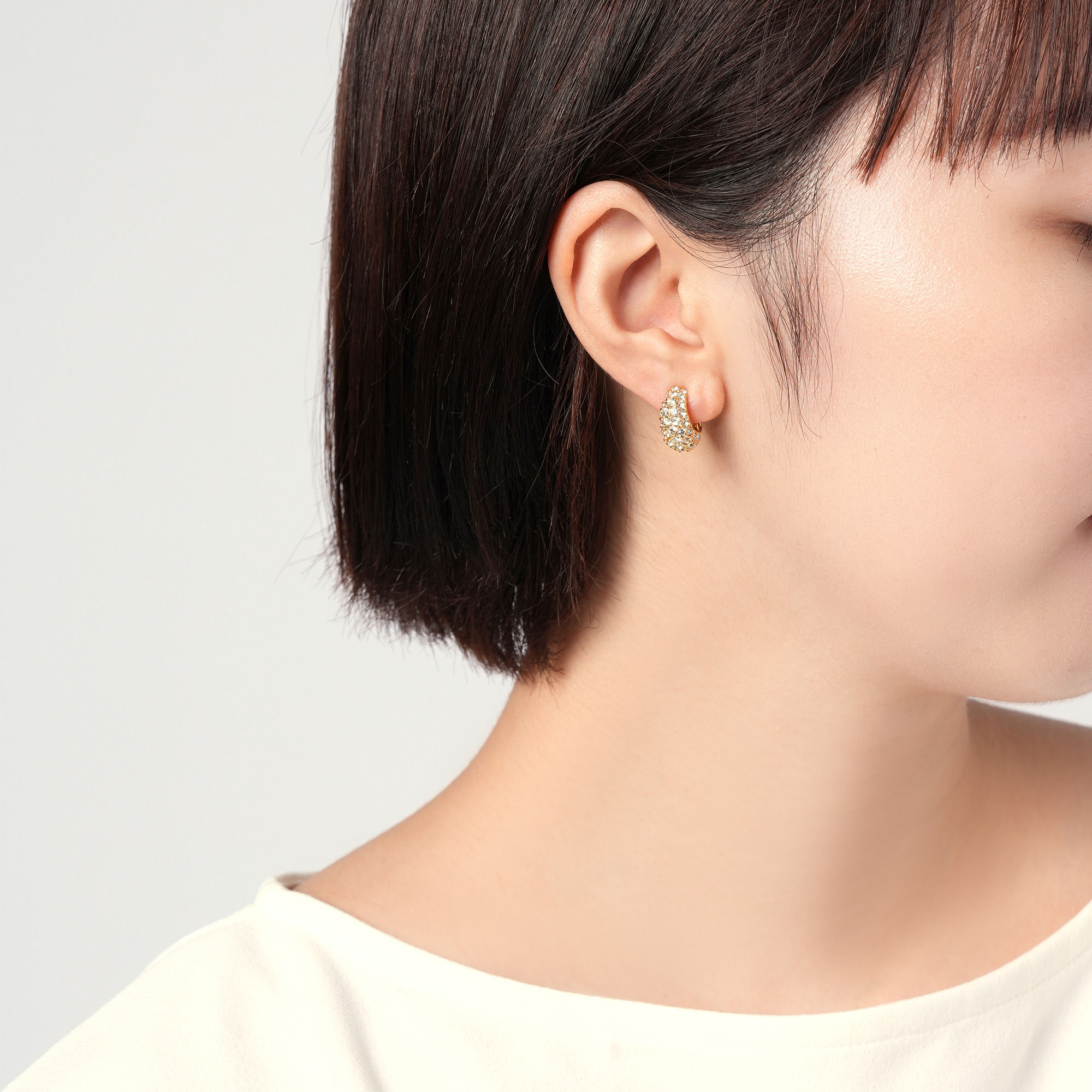 程よいサイズ感とパヴェの輝きが美しいイヤリング。隙間なくセッティングされたパヴェの輝きは高級感あふれ、耳元を華やかに演出します。シンプルながらも存在感あるイヤリングは幅広いシーンで活躍します。
