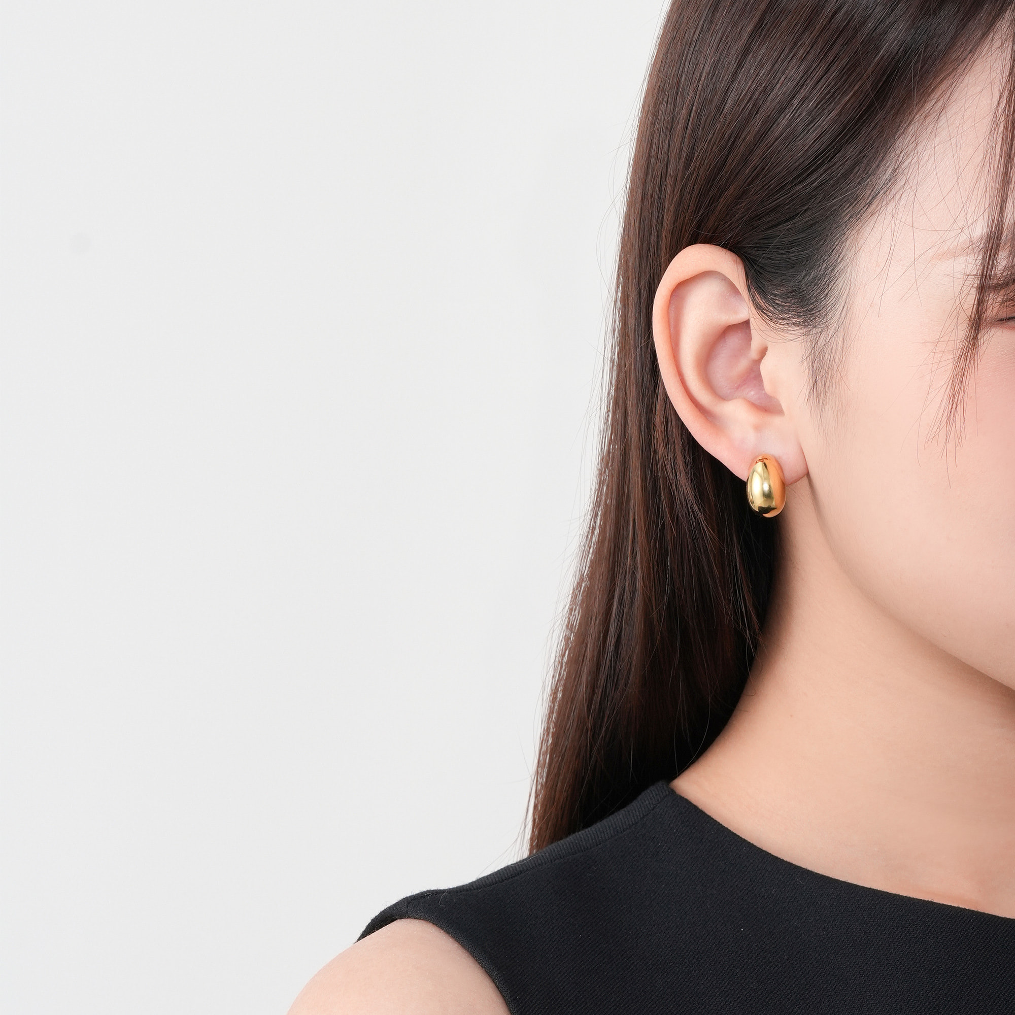 艶やかなゴールドカラーベースのイヤリング。シンプルながら細部までこだわった高級感のあるデザイン。イヤリング金具が見えない、ピタッとフィットするつけ心地。モダンで存在感のあるイヤリングはスタイリングに合わせやすく、様々なシーンで活躍してくれます。