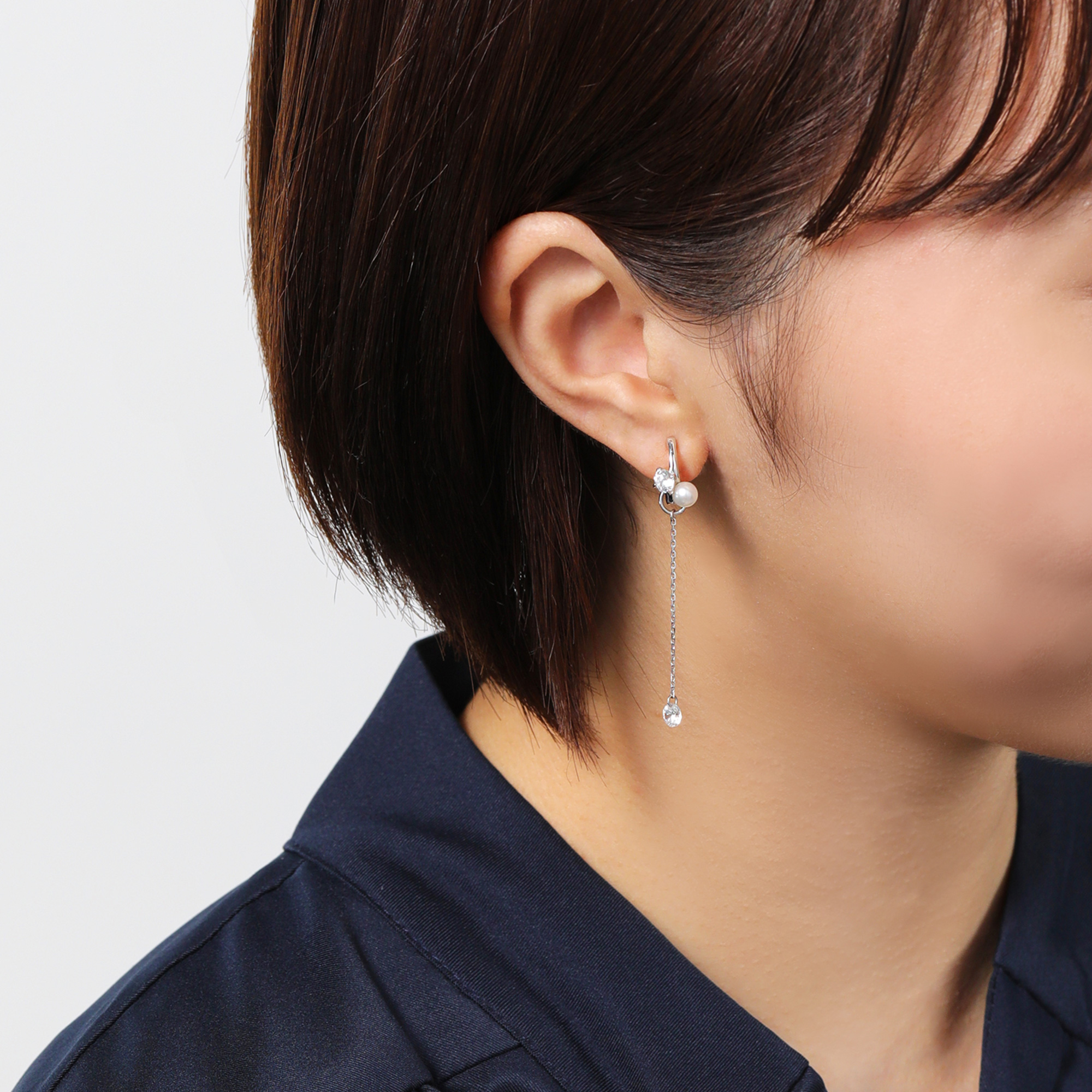 また、G型イヤリングはクリップタイプで耳の上方にイヤーカフのようにお着けいただくこともできます。
