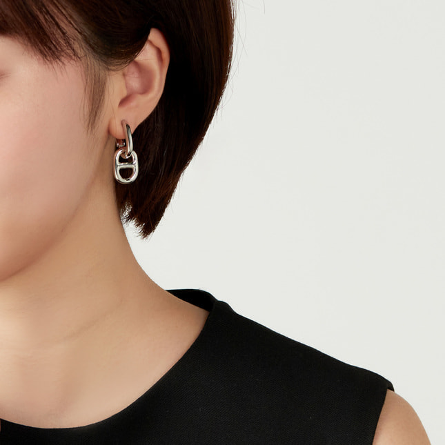 チャームの向きを変えてメタリックイヤリングとして、またチャームを外してシンプルなオーバルフープイヤリングとしてもお使いいただるチェンジャブル仕様です。