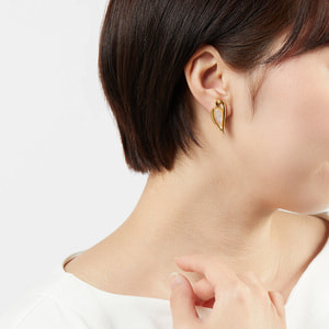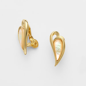 美しい曲線のハート型のメタルフレームの中にティアドロップのシェルをセッティングしたイヤリング。流れるラインの陰影の中に、シェル特有の温かみのある輝きが美しく際立ちます。耳にぴったりと馴染む着け心地で、縦長のフォルムがすっきりとした印象を与えます。
