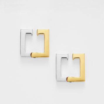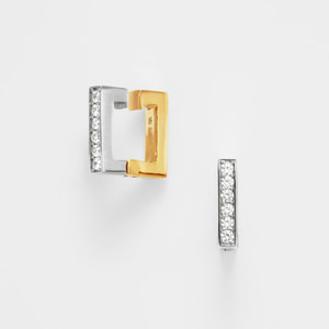 片面はシルバー色にキュービックジルコニアをセッティングしより華やかに、もう片面はゴールド色の地金の輝きを楽しめるシンプルなデザイン。