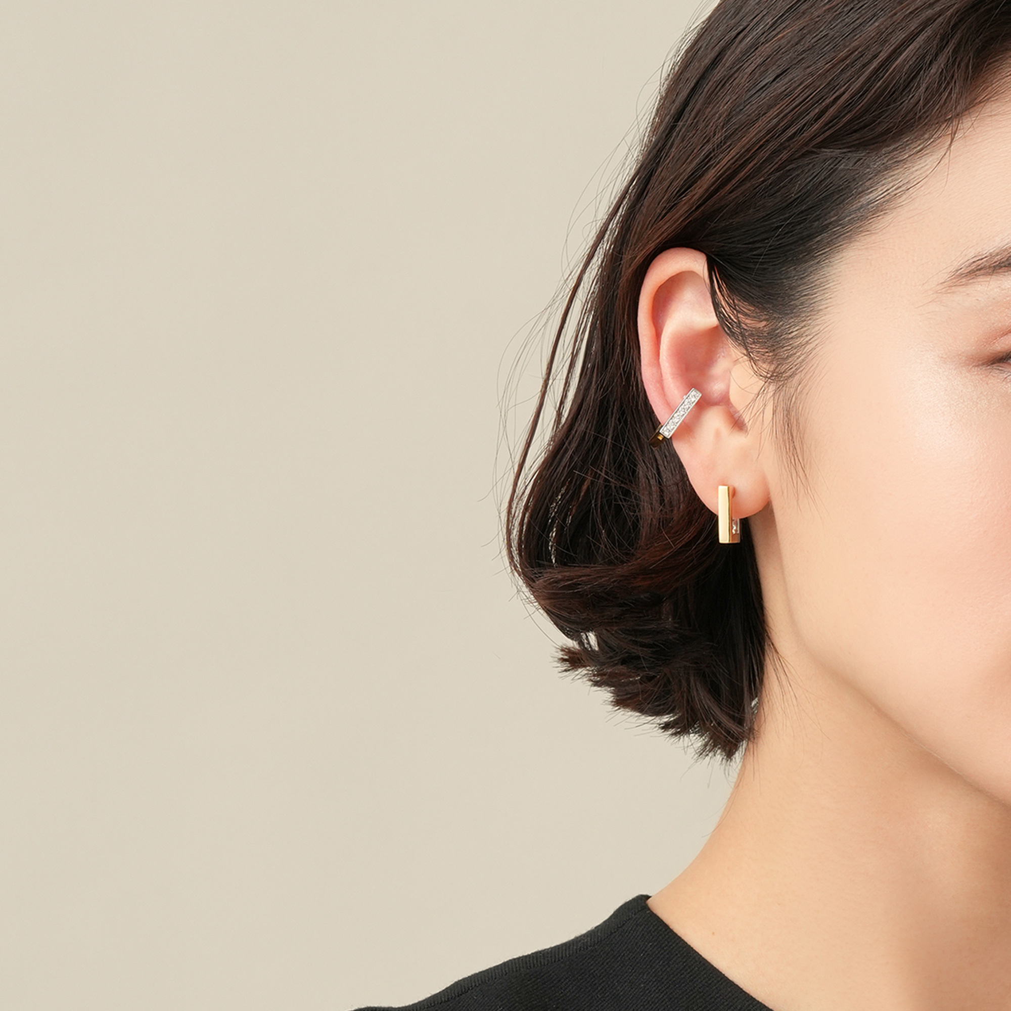 耳の上の方にイヤーカフとして着けたり、他のイヤリングとも重ね付けなど様々なコーディネートを楽しめます。