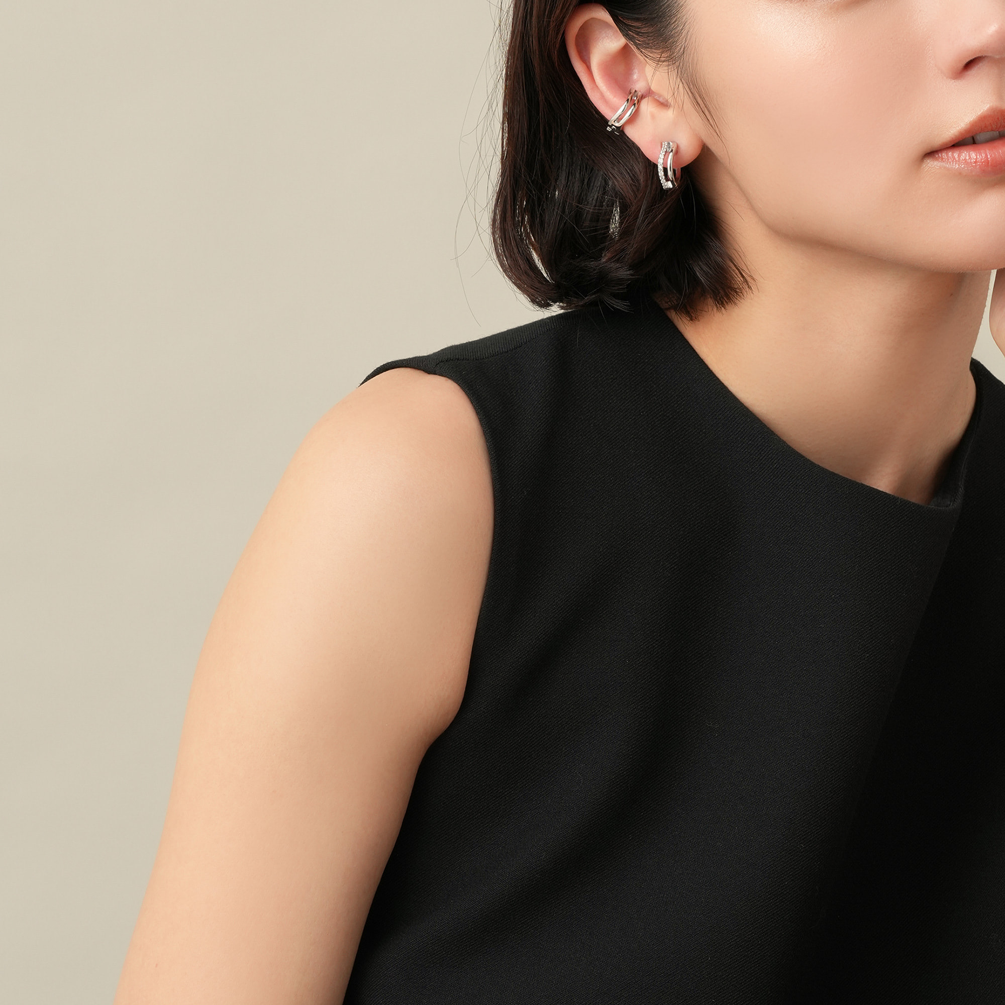 イヤーカフとして着けたり、他のイヤリングとの重ね付けなど、さまざまなコーディネートに活躍するアイテムです。