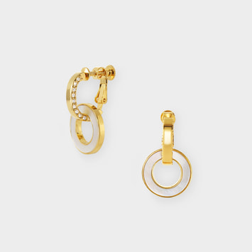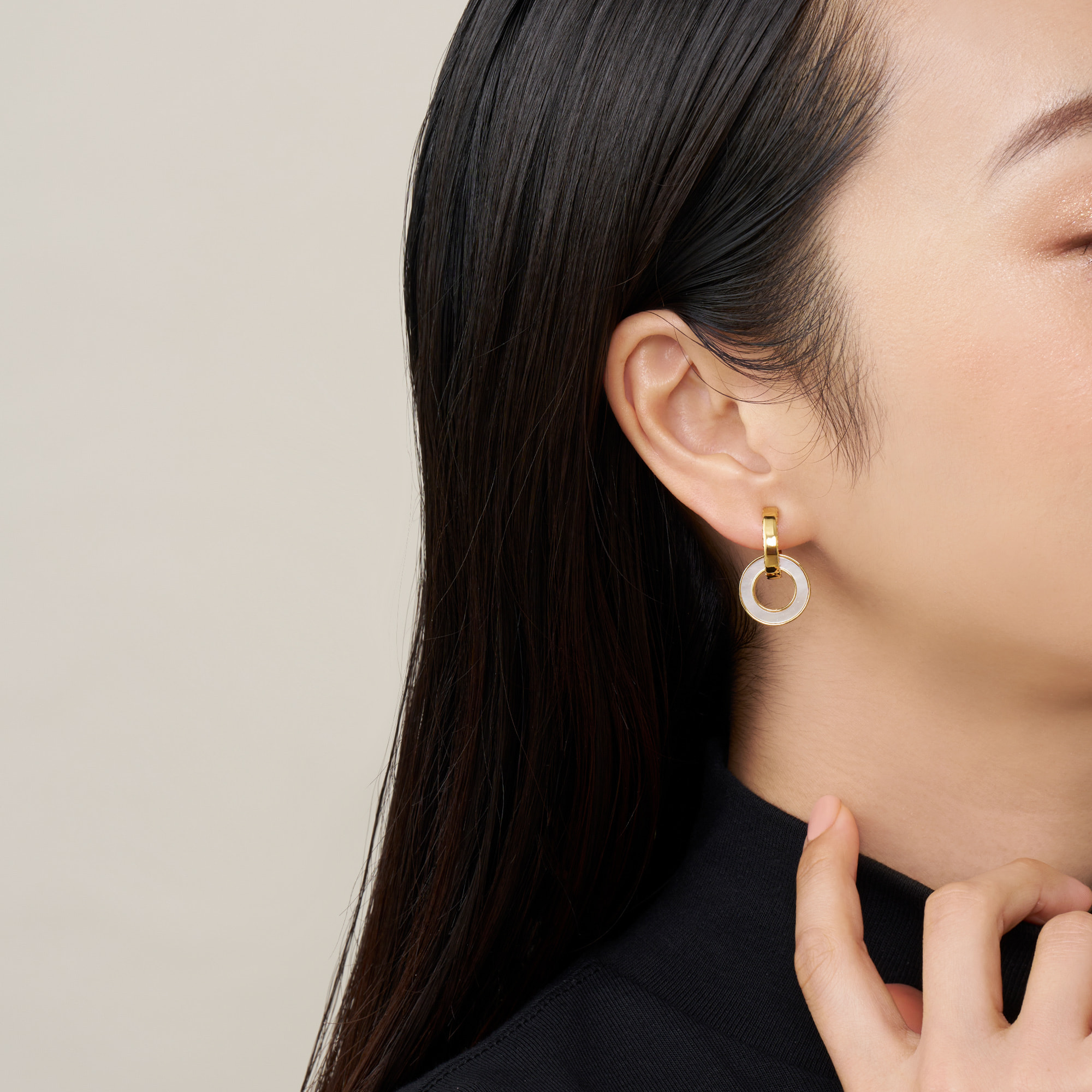 洗練されたサークルフォルムと白蝶貝の温かみのある光沢が目をひくイヤリング。