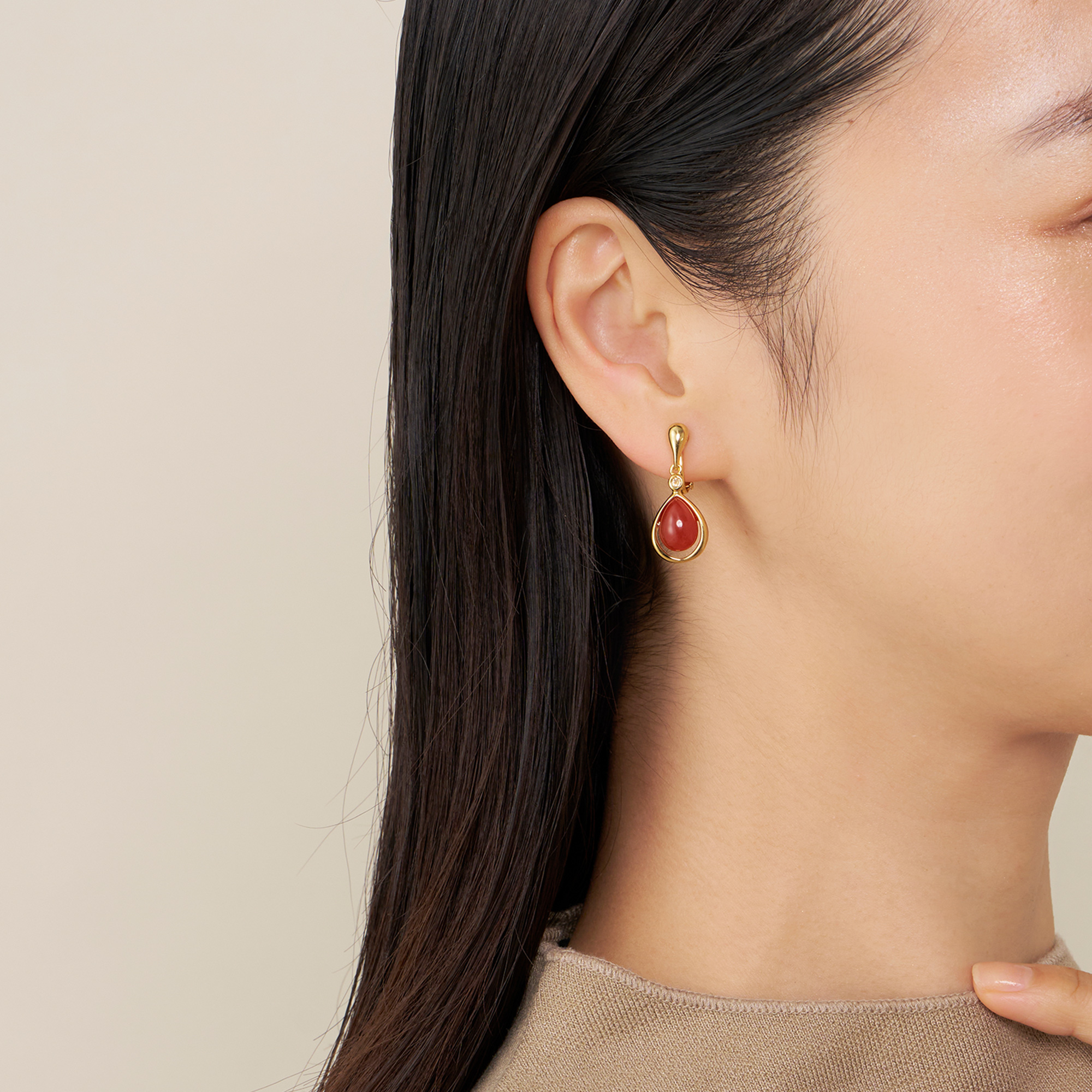 ぷっくりとした艶やかなカーネリアンが印象的なイヤリング。