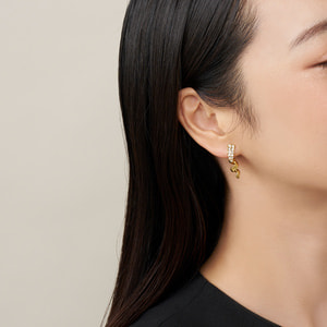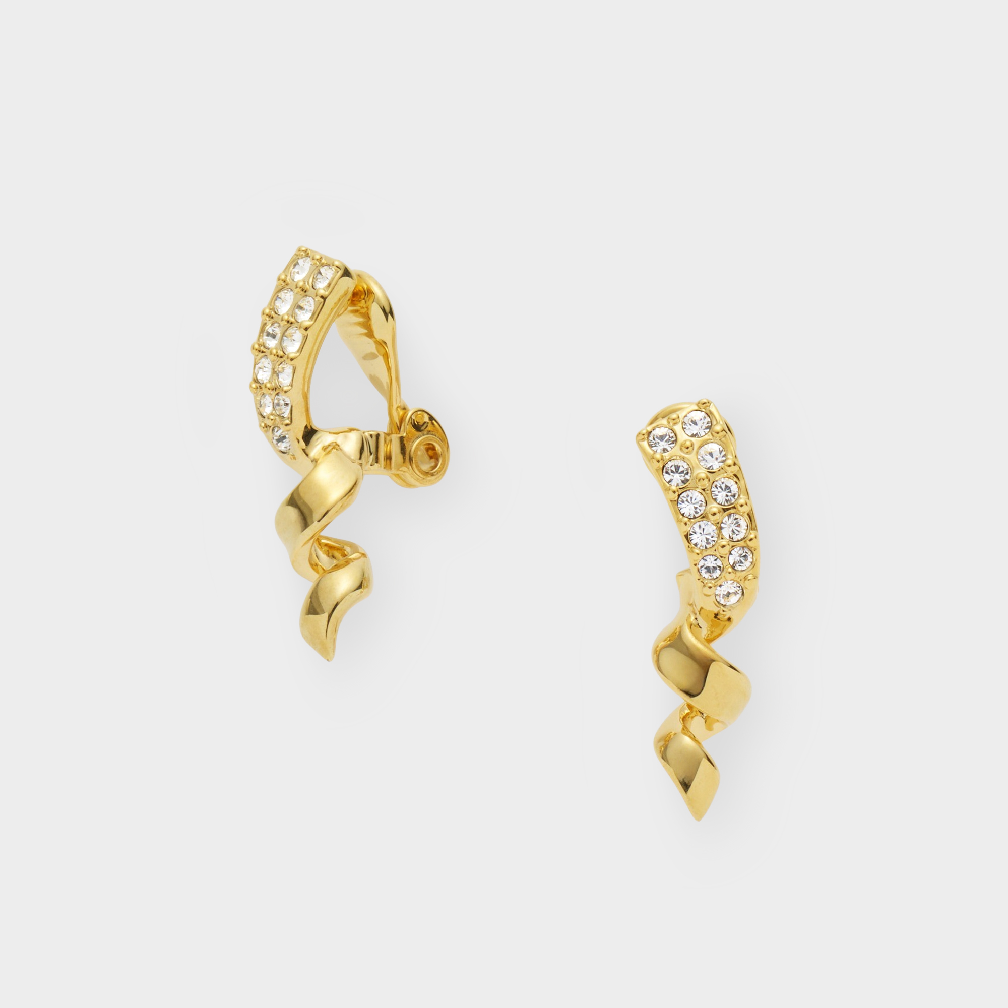 しなやかならせんを描くリボンをモチーフにしたイヤリング。動きのあるアイコニックなフォルムが魅力です。ちりばめられた小さなカットガラスが、繊細ながら華やかな輝きを添えます。デイリーからドレスアップまで、様々なシーンをスタイリッシュに演出するアイテムです。