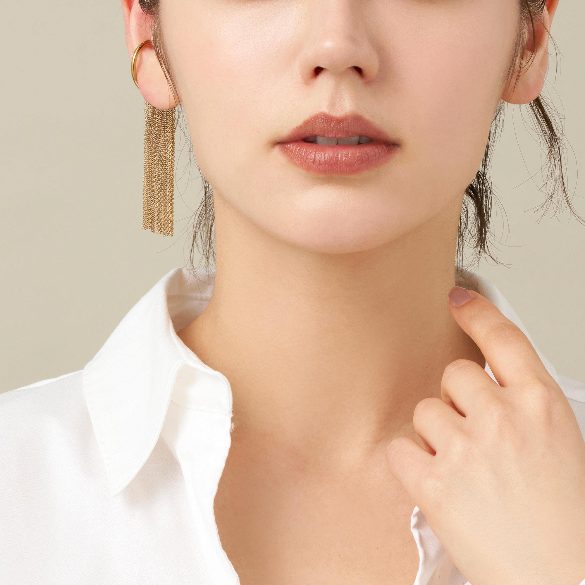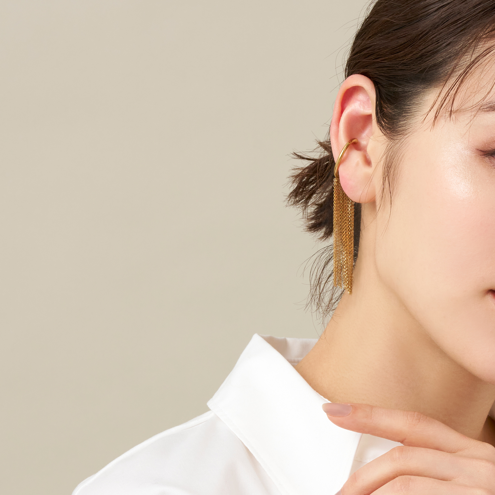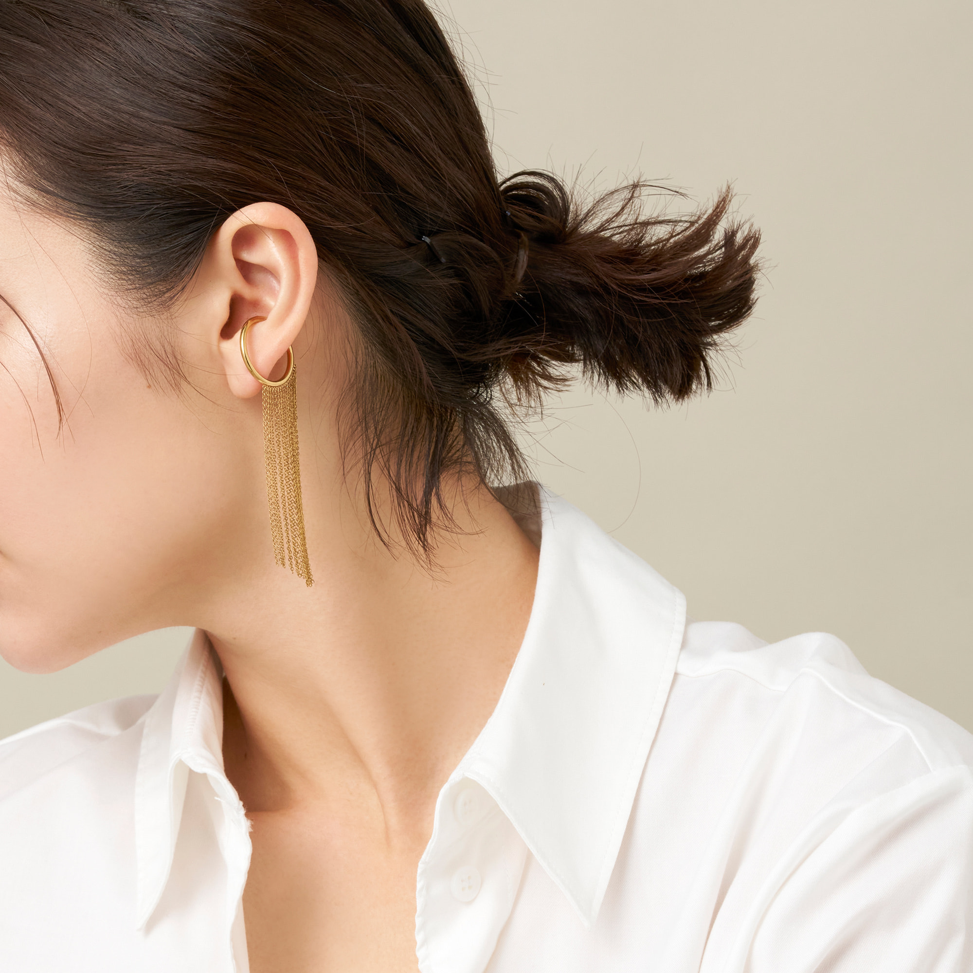 細いロングチェーンが美しいフリンジイヤーカフ。