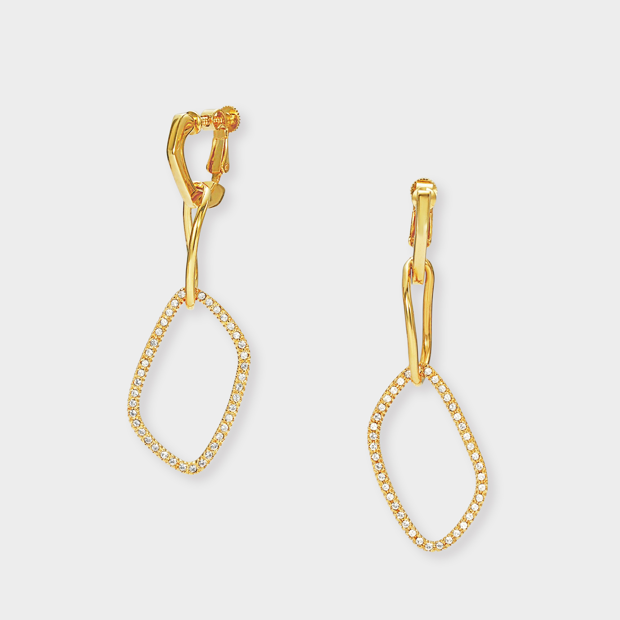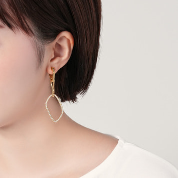 パーツの着け方を変えてさまざまな表情を楽しめるチェンジャブルタイプのイヤリング。