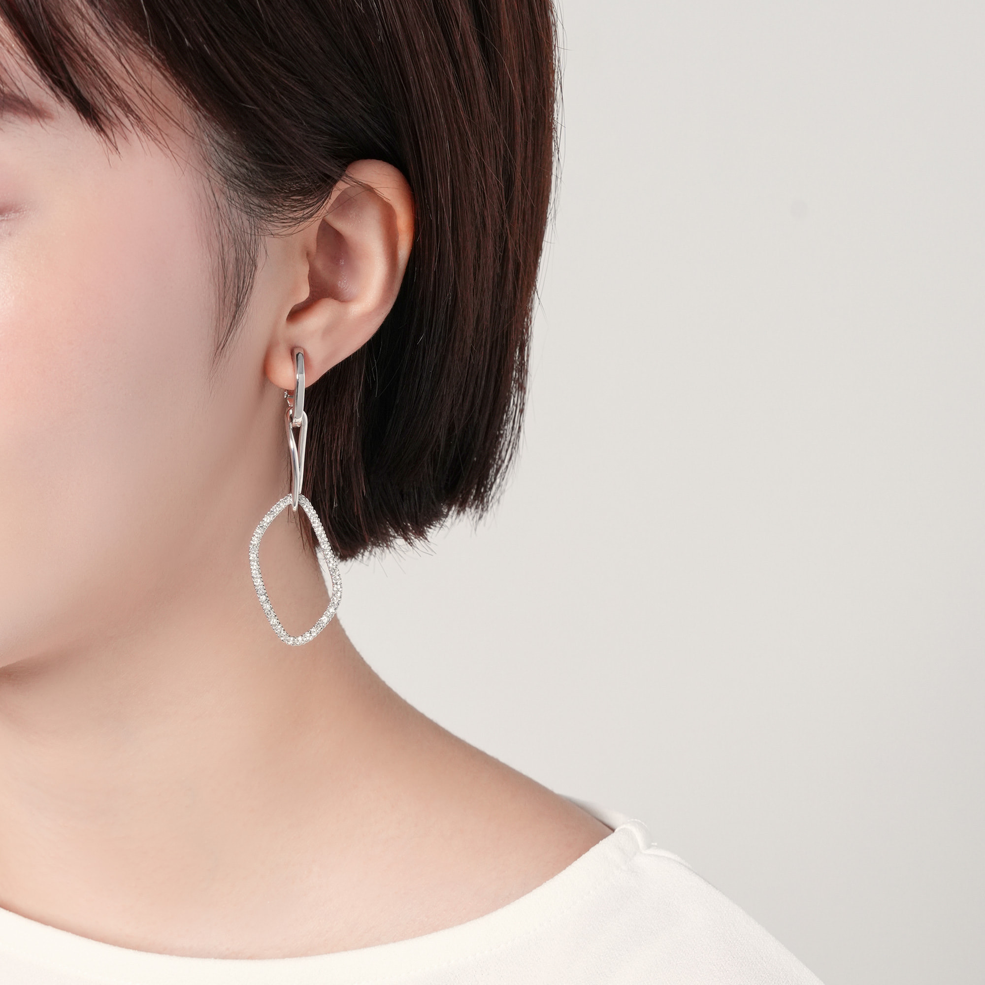 トップパーツをロングにしてスタイリッシュな印象にしたり、パーツを外してシンプルなフープイヤリングとしてお使いいただけます。