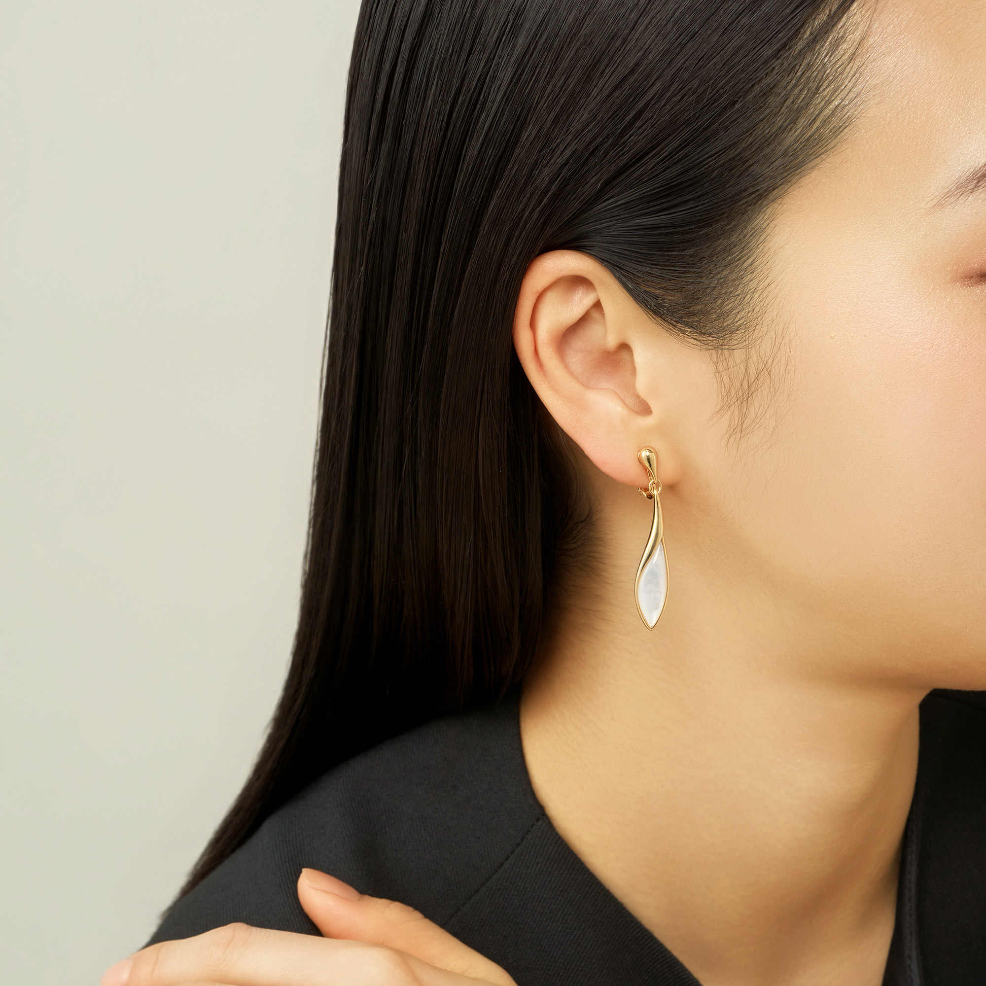 シンプルな装いにもさりげなく華やぎを添える、洗練された美しさが魅力のイヤリングです。
