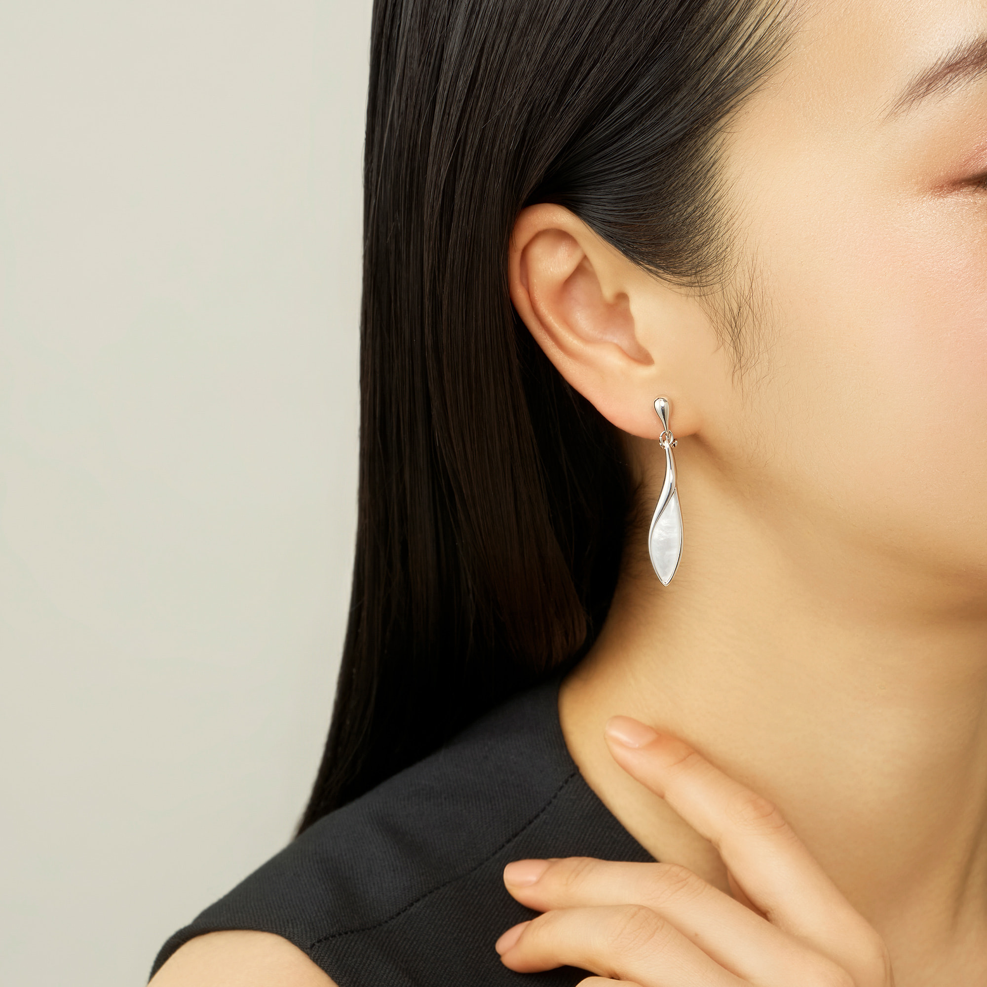 シンプルな装いにもさりげなく華やぎを添える、洗練された美しさが魅力のイヤリングです。