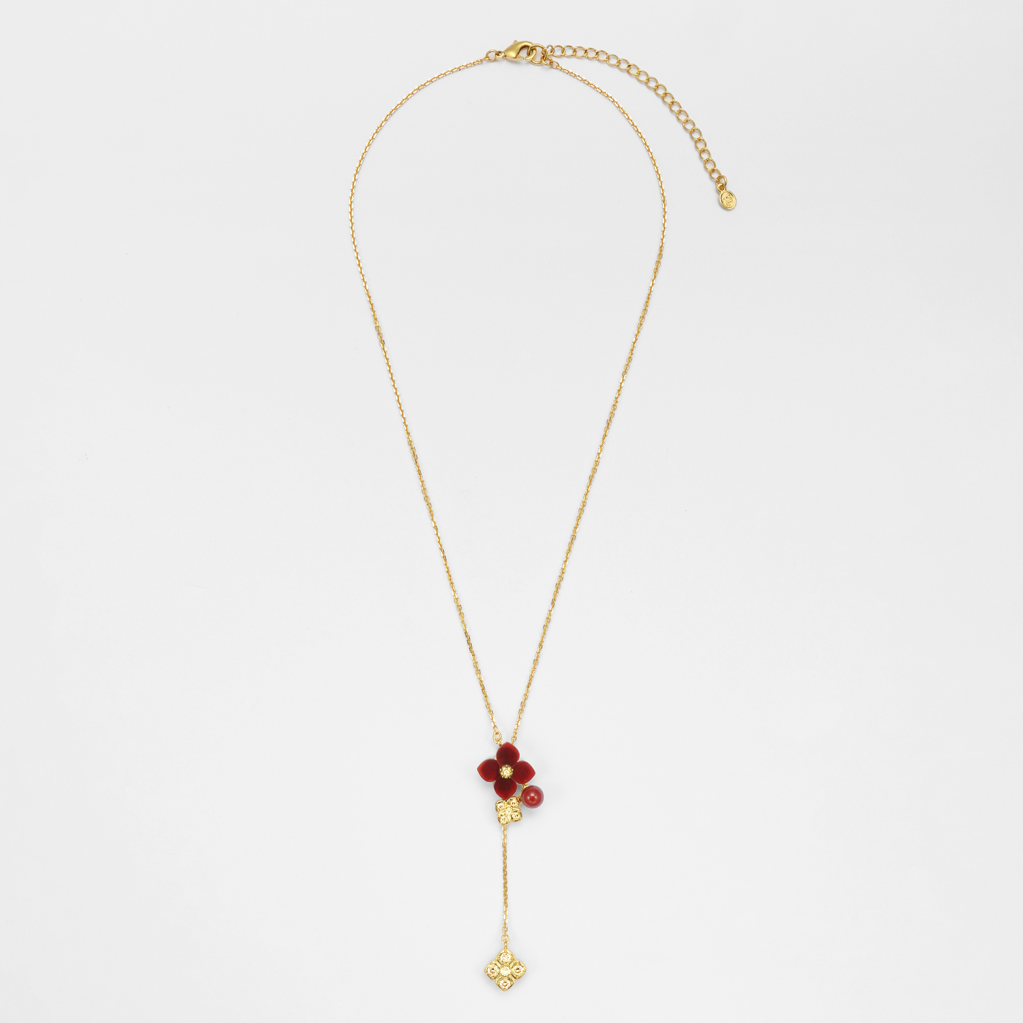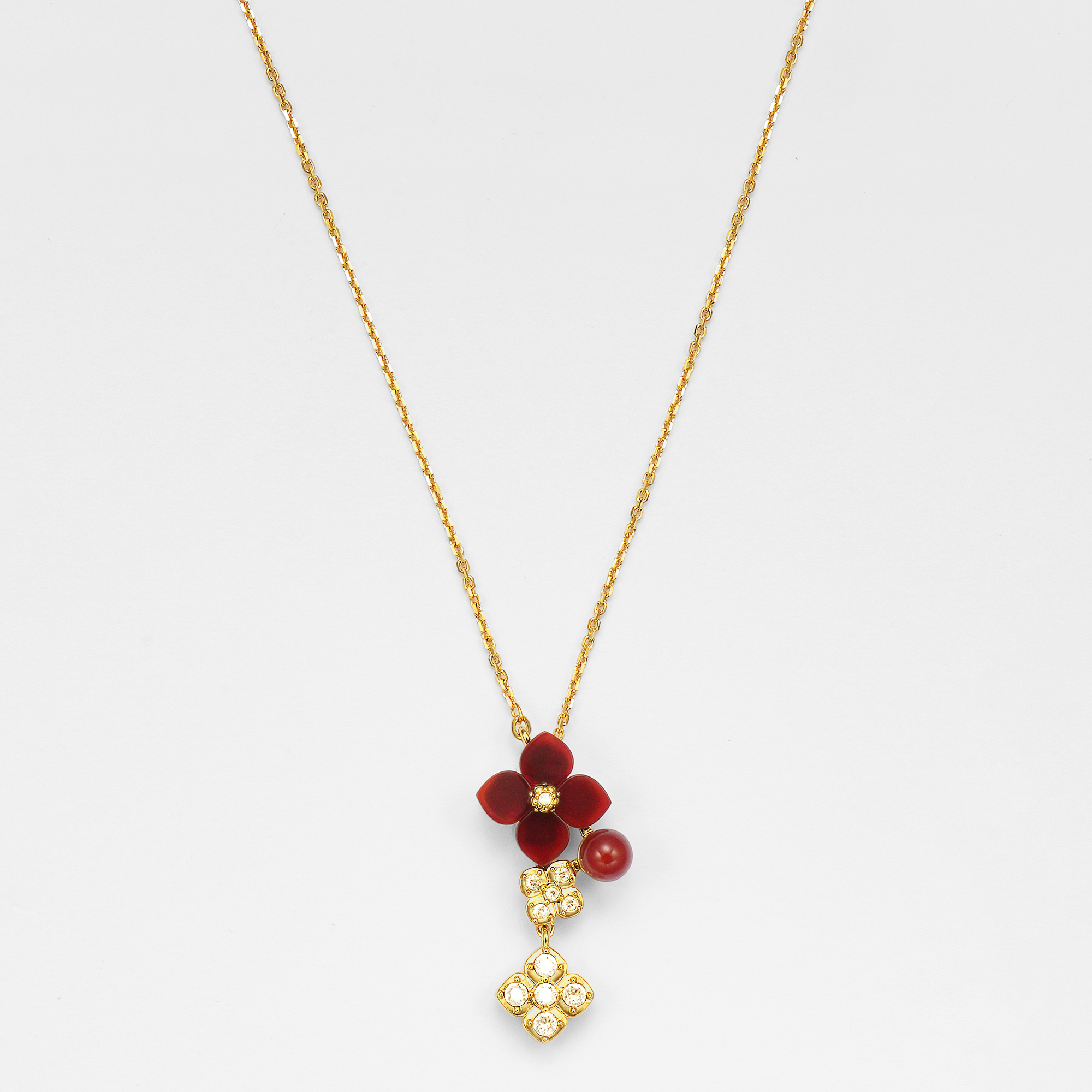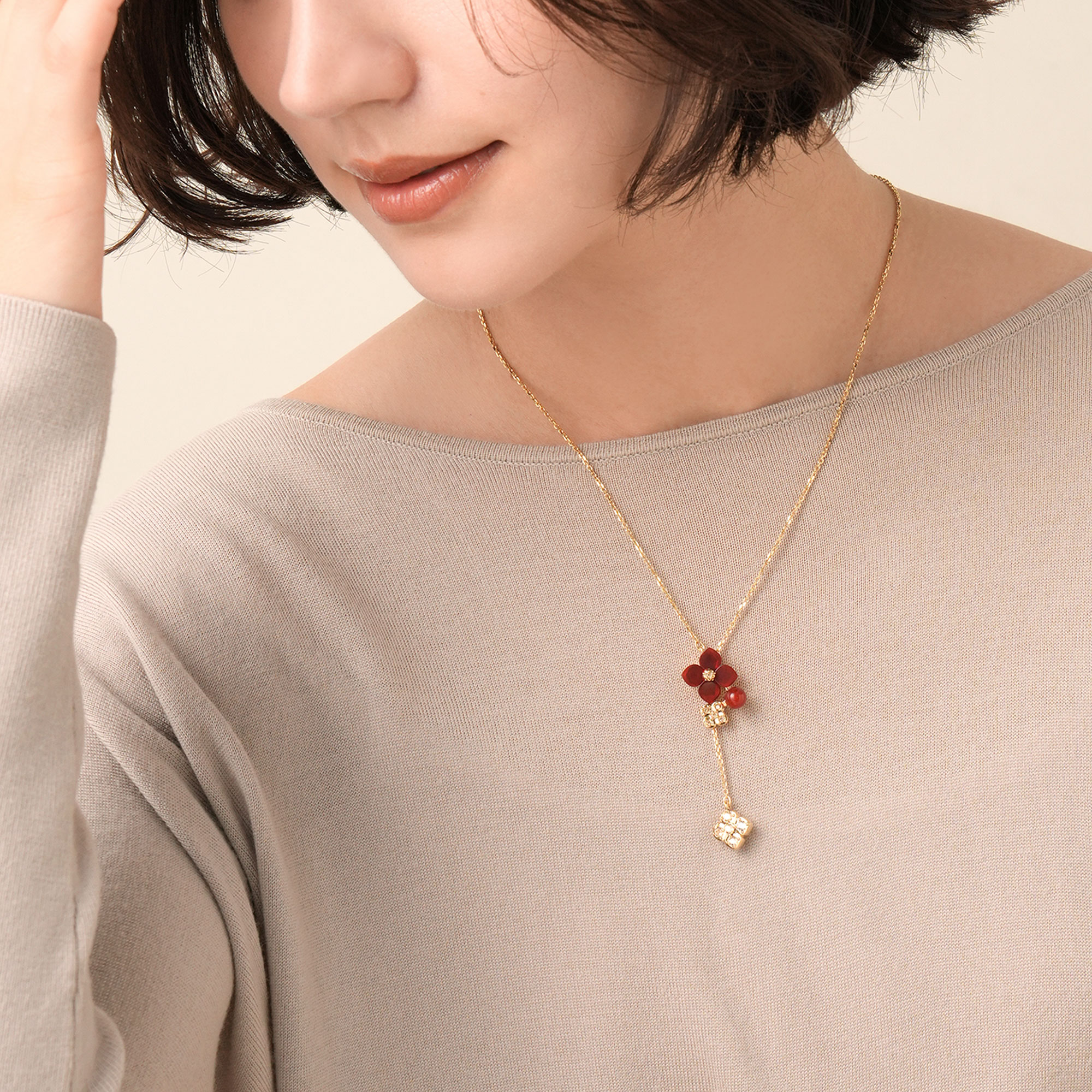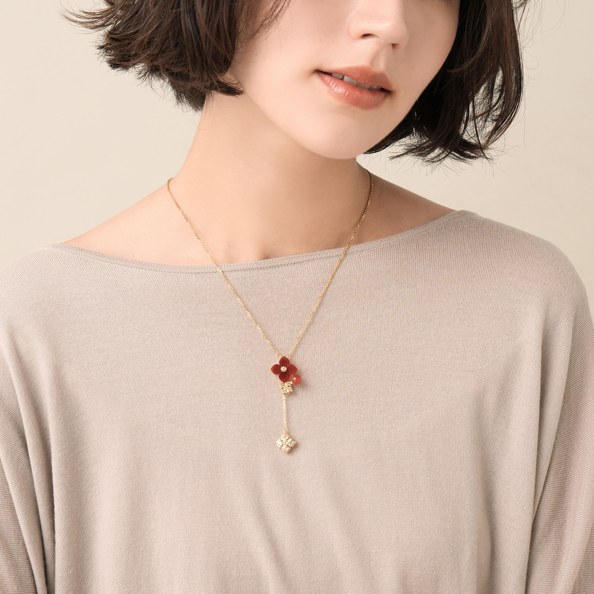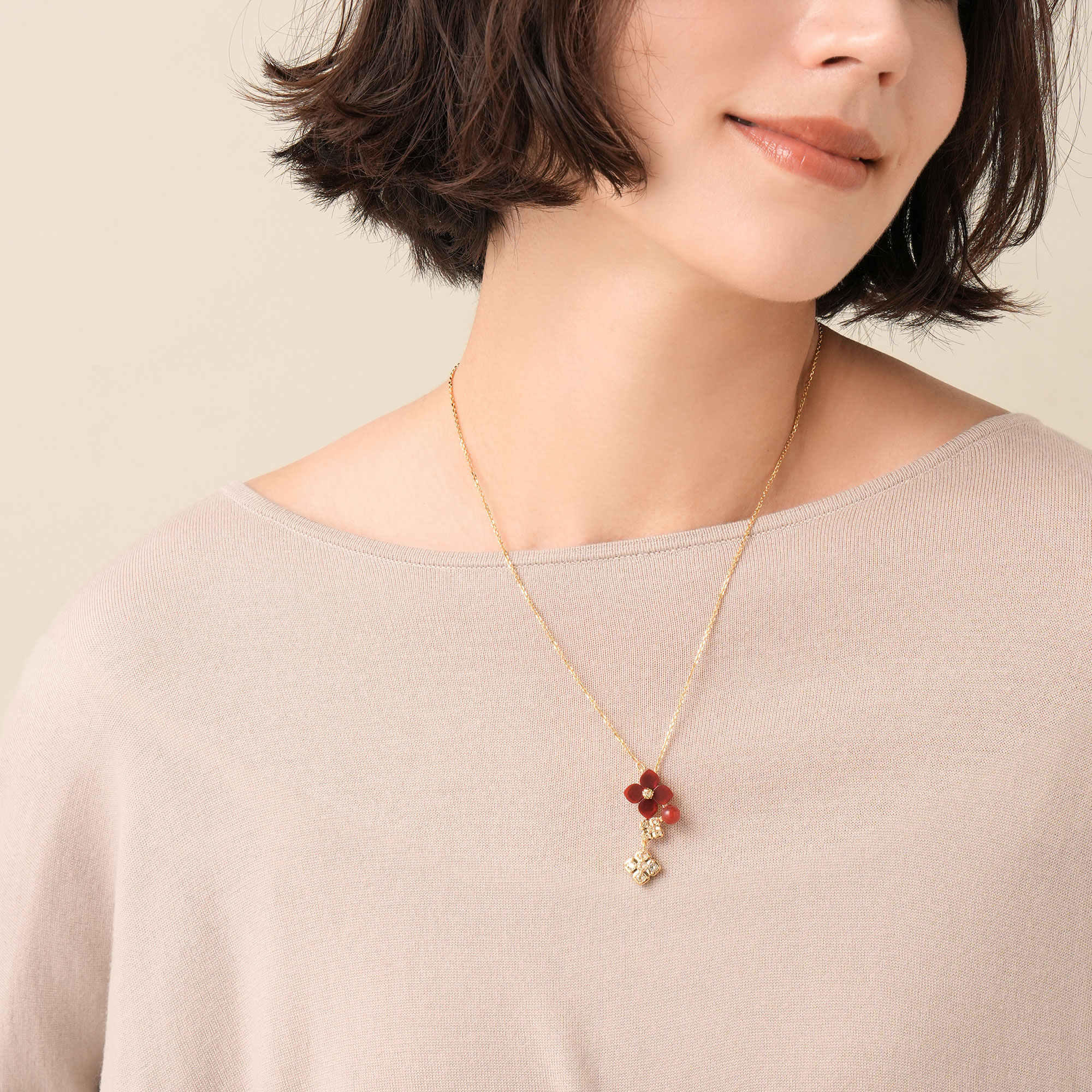 質の良いカーネリアンを1つ1つ丁寧にかたどった可憐な花モチーフのネックレス。