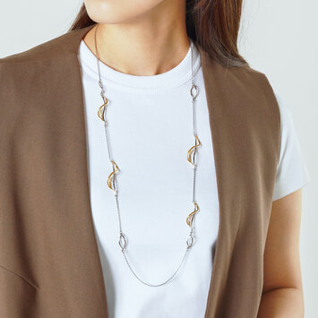 ウェーブラインがエレガントで、華美になリすぎず様々なスタイリングに合わせやすいロングネックレスです。