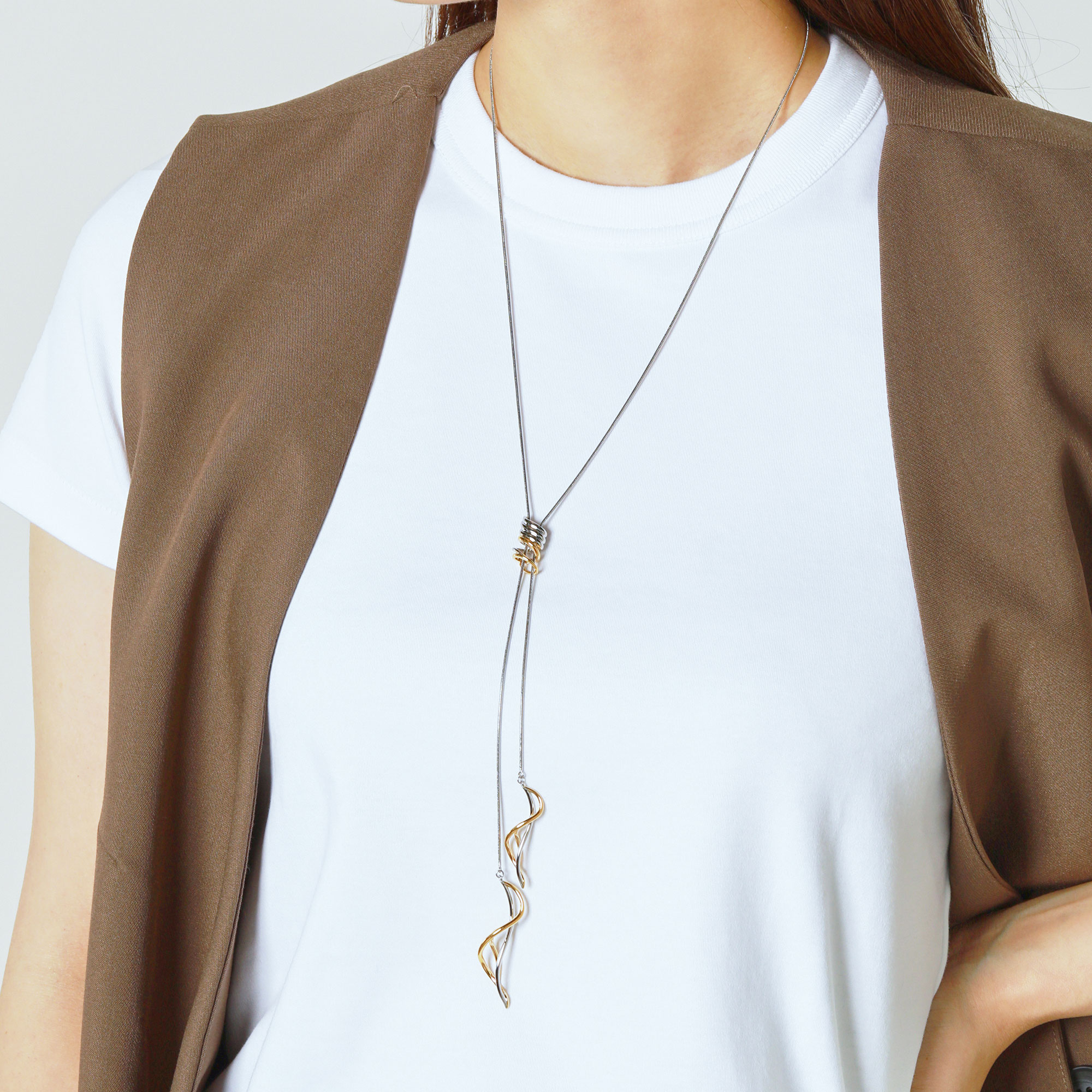 ラグジュアリーでモダンな印象にも演出できるラリエットネックレス。