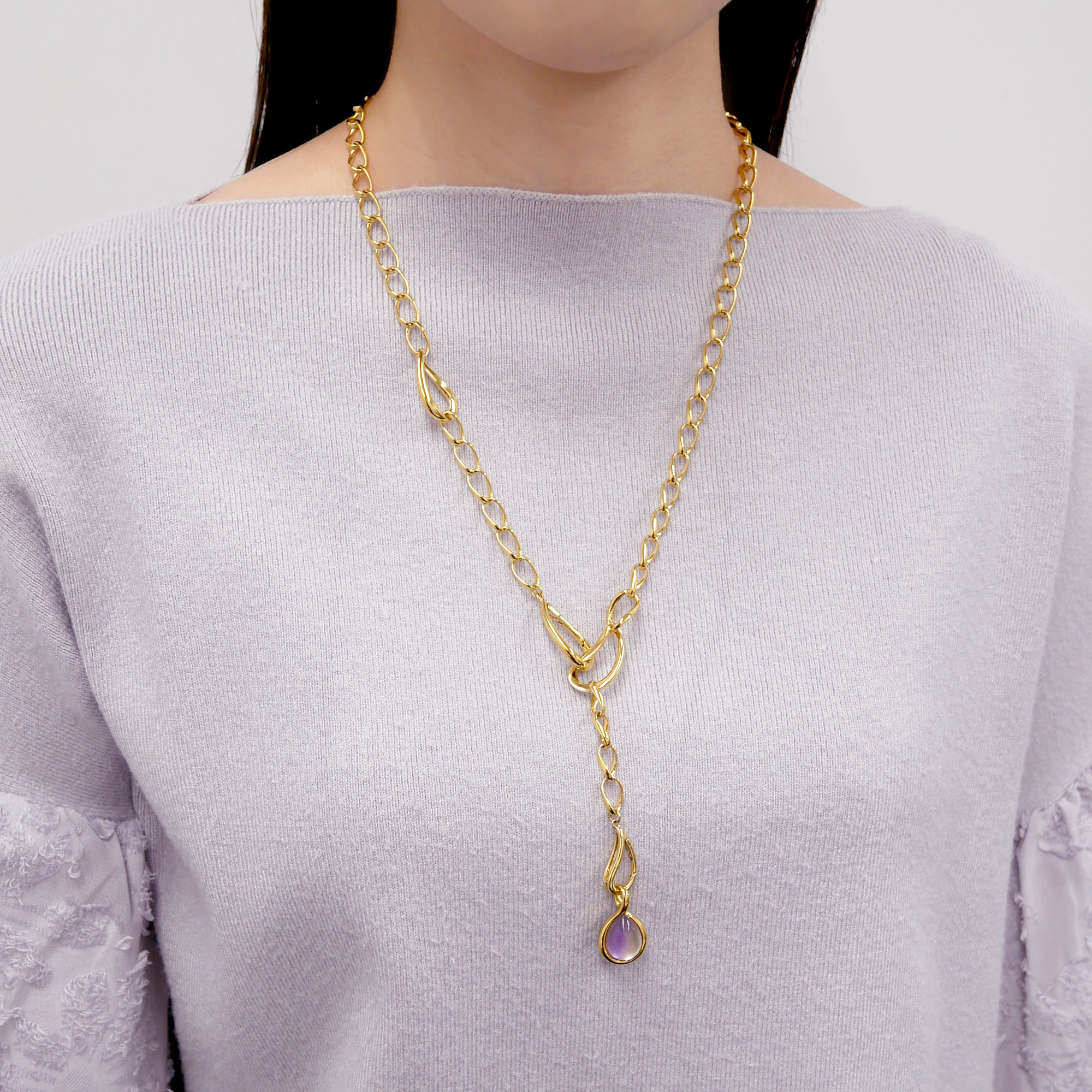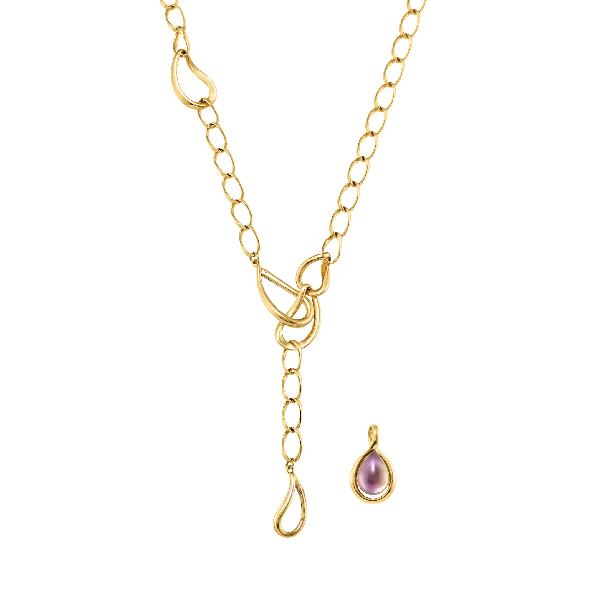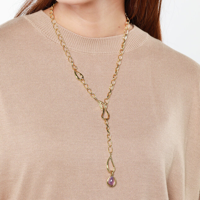 ドロップデザインのオリジナルクラスプでトップを外してチェーンネックレスにしたり、Y字の長さを変えてモダンにつけこなしたりと