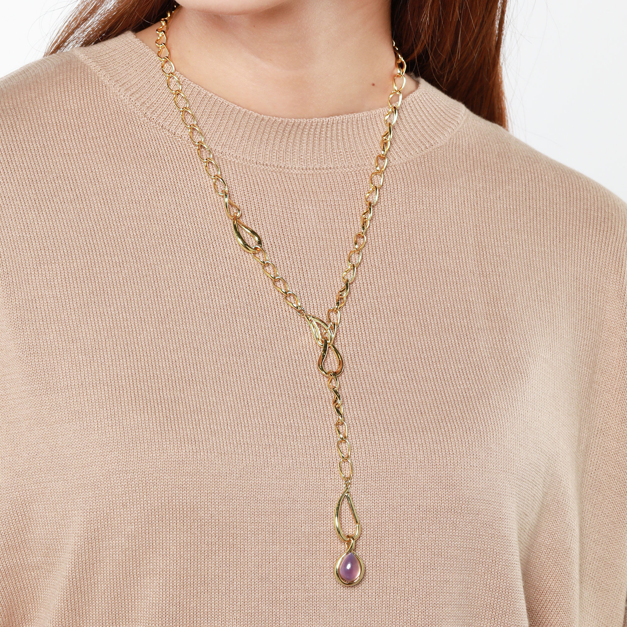 ブドウの涙のきらめきを、希少な天然石アメトリンを使って透き通ったみずみずしいドロップのデザインでY字ネックレスを作りました。