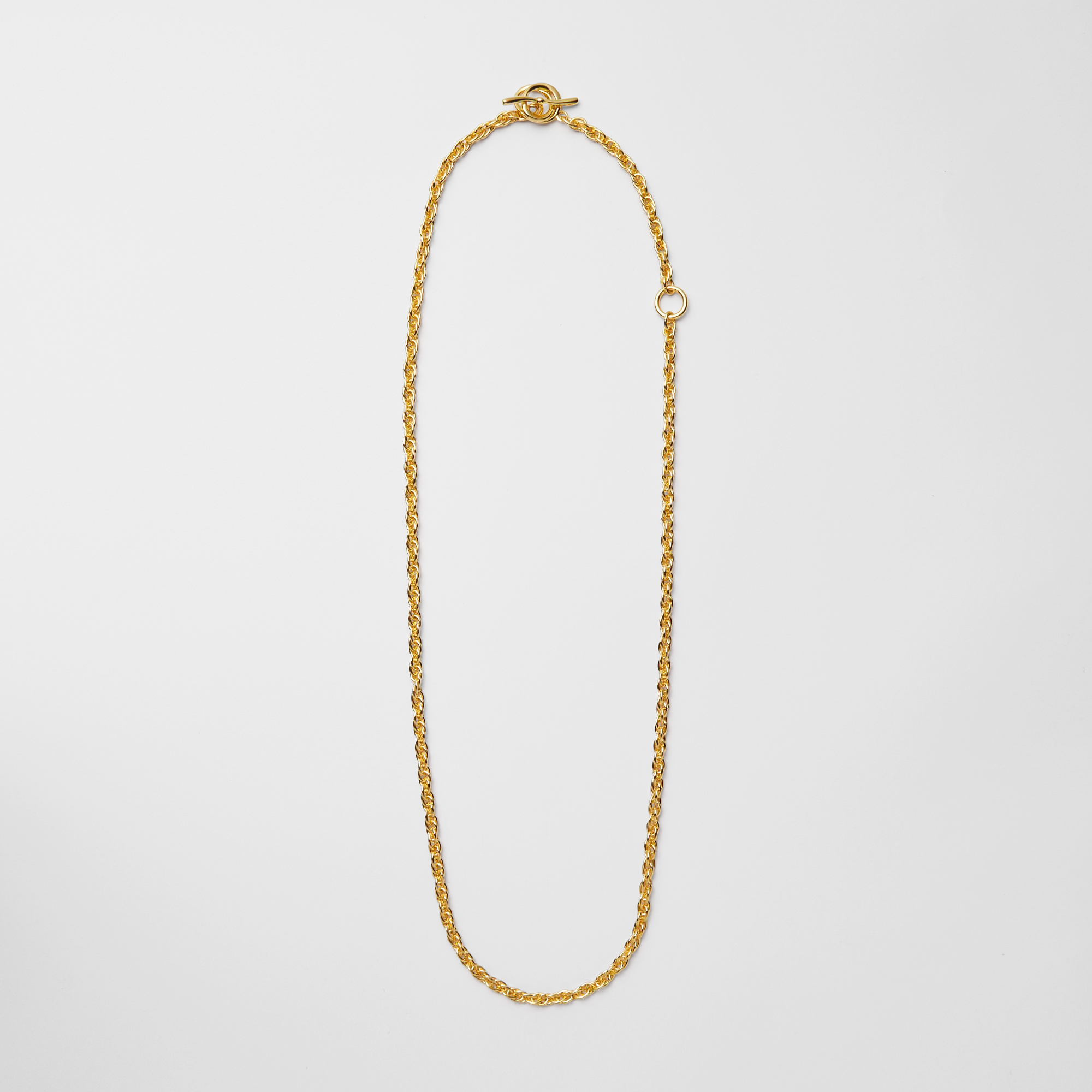 細いメタル線を編み込んだロープチェーンは、繊細ながら存在感があり、コーディネートにエレガントな印象をプラスします。