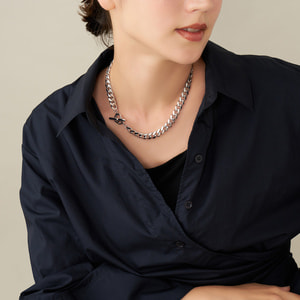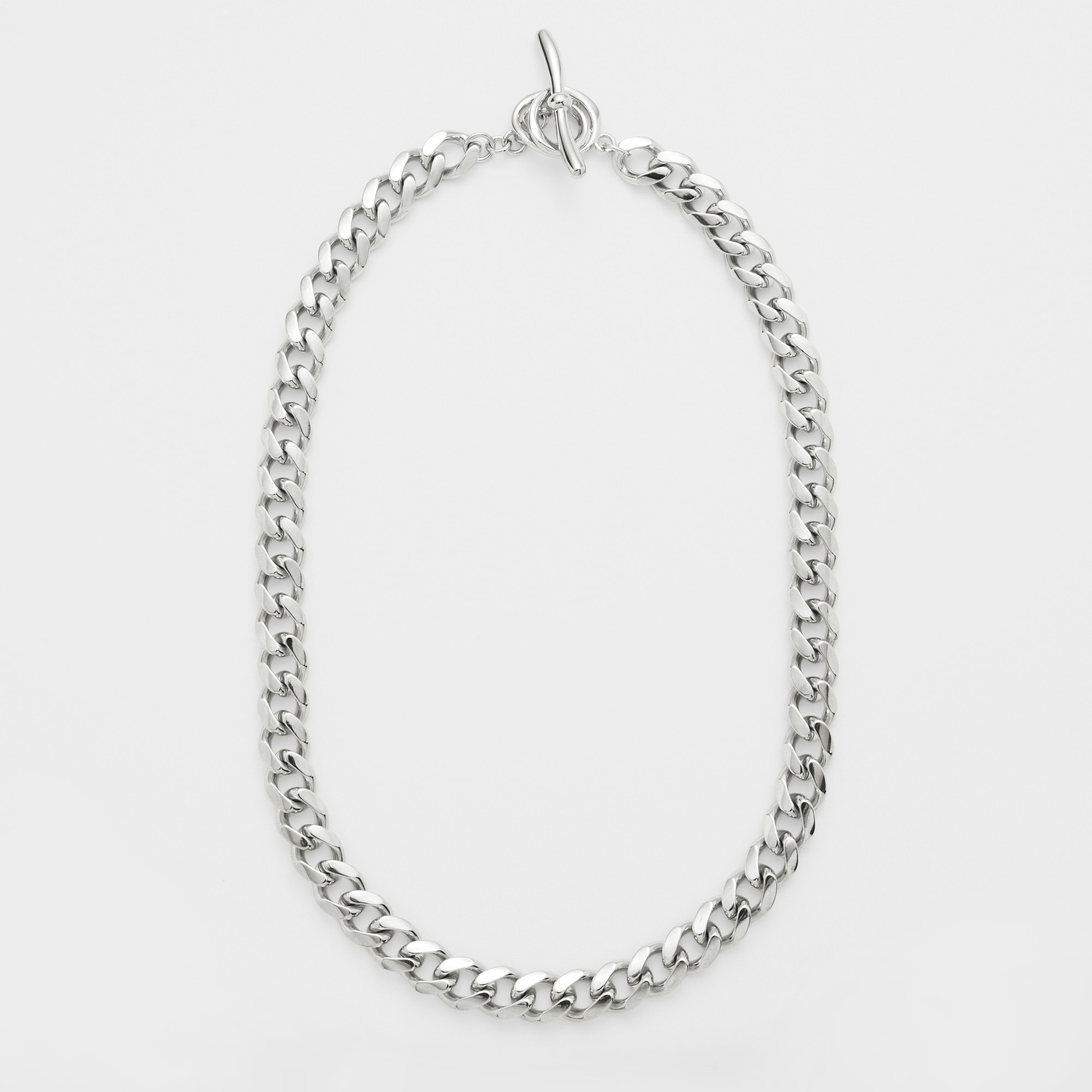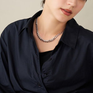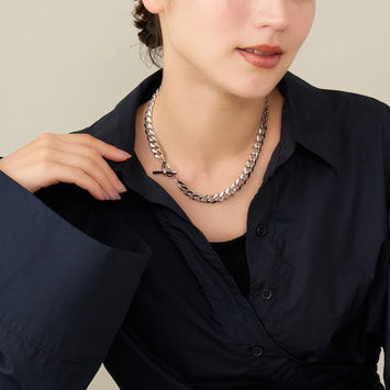 エッジが効いたモダンなフォルムのチェーンネックレス。